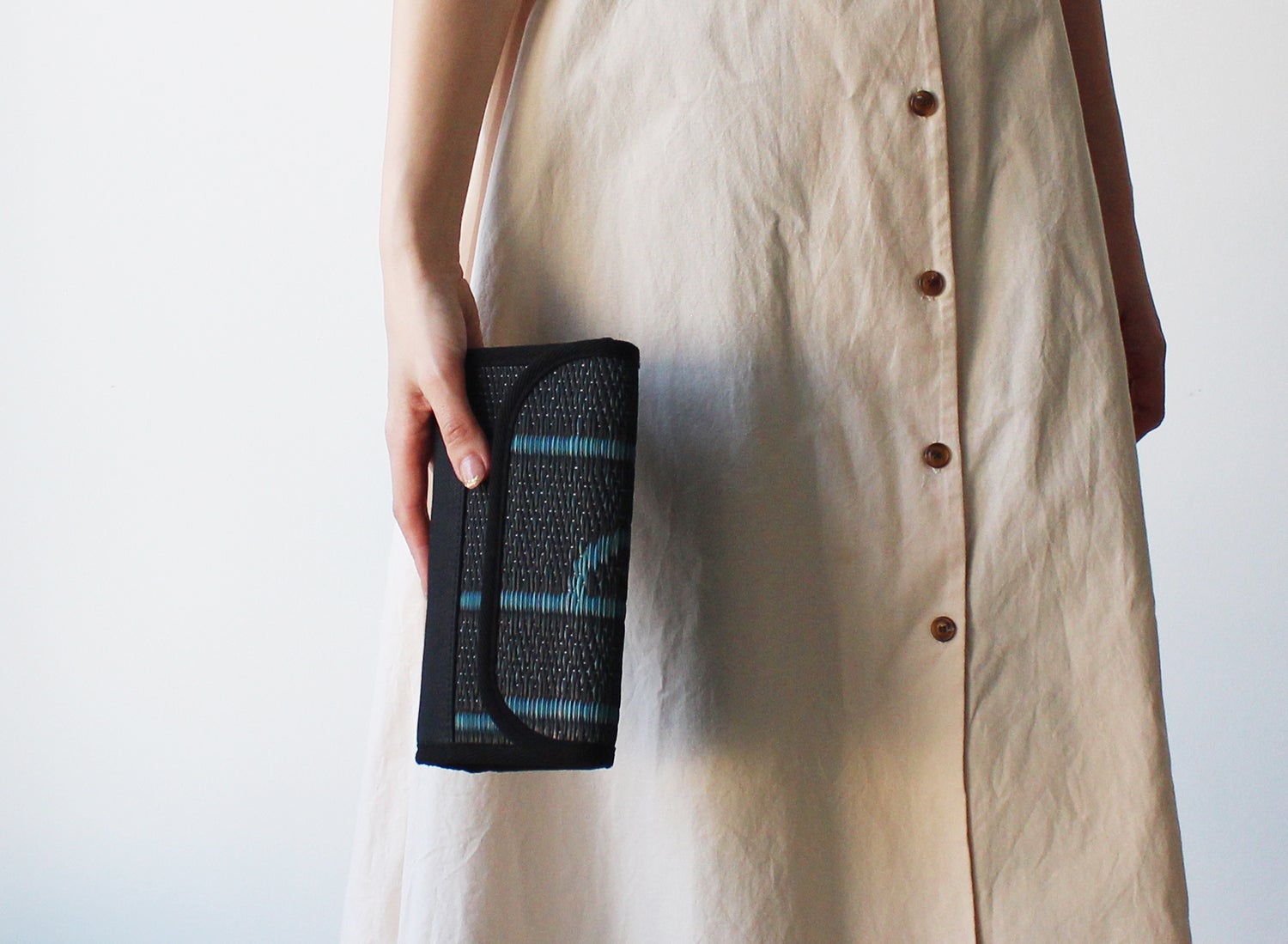 和室で親しまれてきた畳を、もっと身近に外出先でも使って欲しいという作り手の想いから今回のプロジェクトでは、今まで縫製が難しく実現出来なかったバッグ製作に挑戦しました。い草は植物、その加工は構造上の制限がありなかなか商品にする事が出来ず、構想から商品にするまで4年ほどの時間がかかりました。