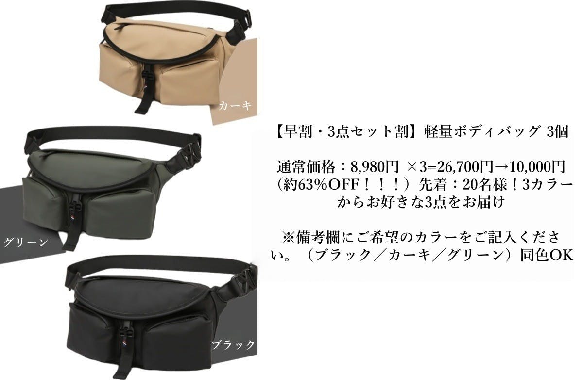 ・【早割・3点セット割】軽量ボディバッグ 3個