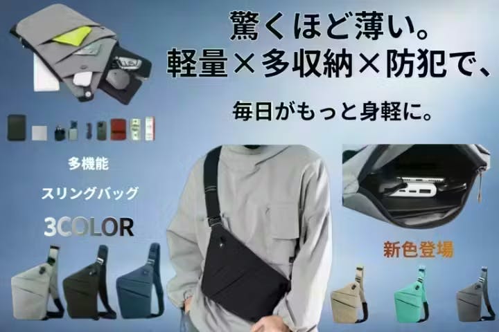 ③超軽量0.21kg・多層収納×防滴仕様|驚くほど薄い機能美を極めたスリングバッグ