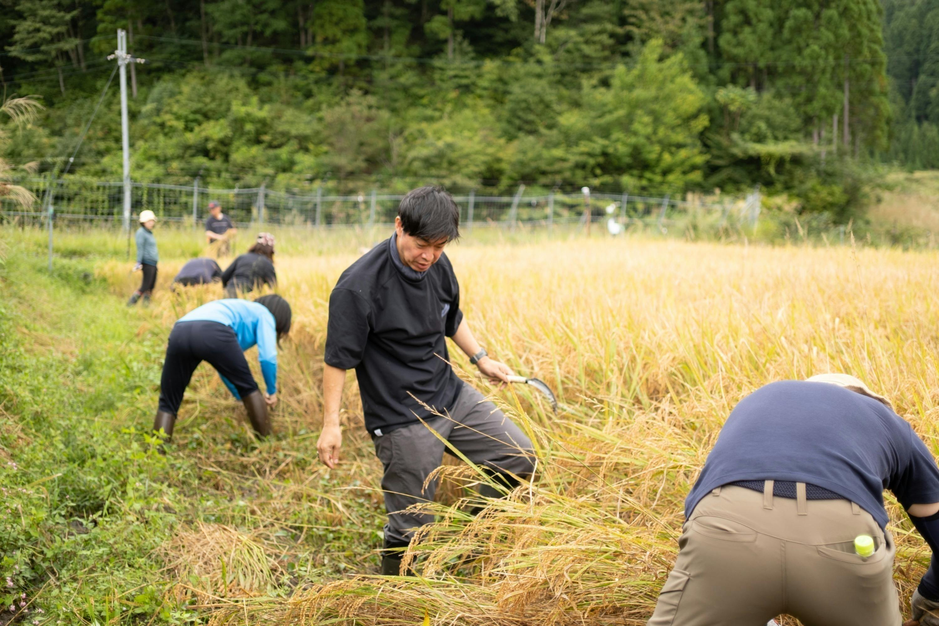 この資源を活かして在原米のブランド化、販路拡大、お酒や玄米麺などの商品開発を進めています。また、移住につながる関係人口を創出するために集落内にある廃校舎を「暮らすように学ぶ」定住促進の研修施設へとセルフリノベーションしたり、味噌づくり、ジビエ体験、などのいなか体験のワークショップを開催しています。
