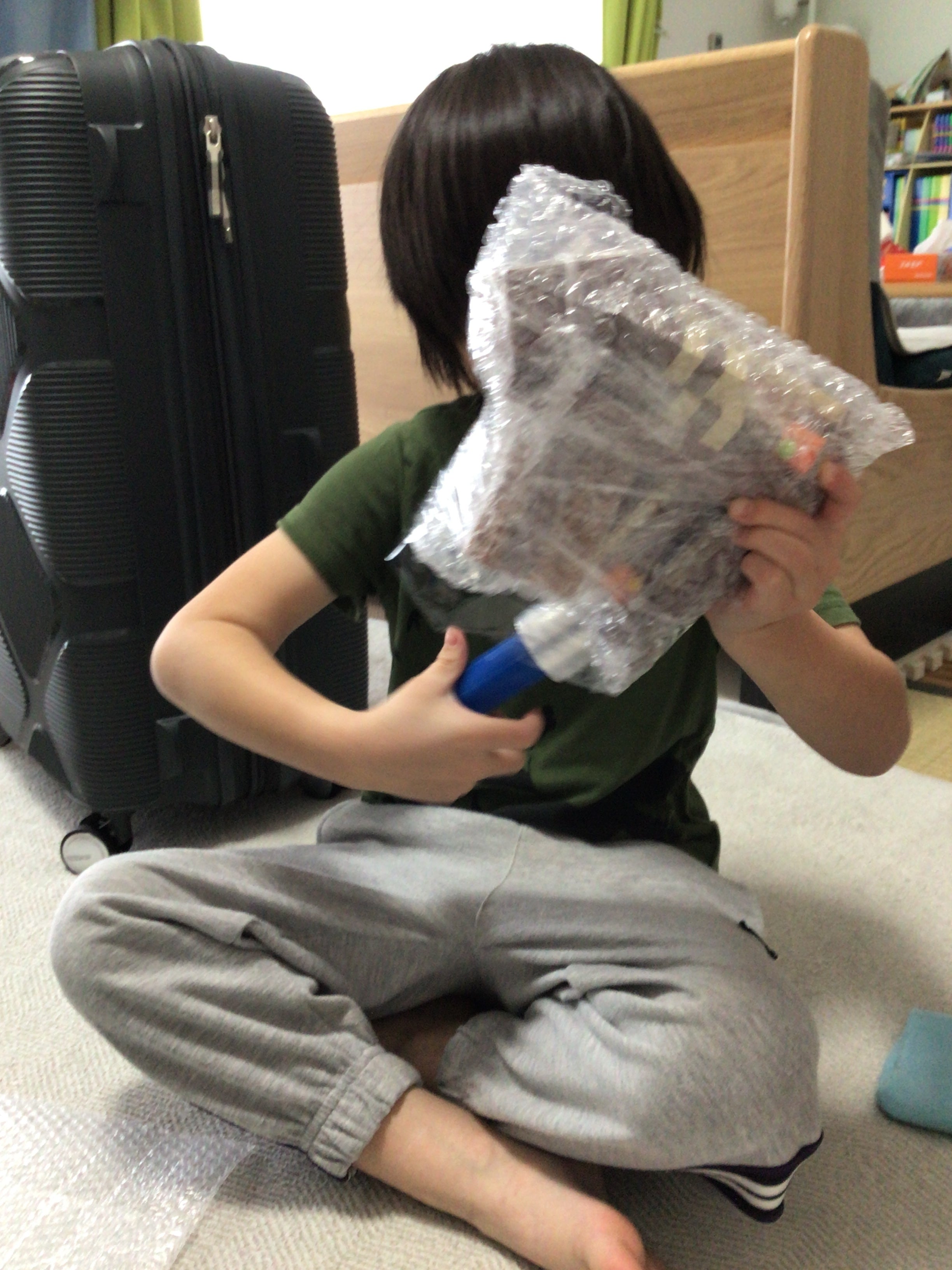 今日はぼくがモデルをプチプチでつつみました。