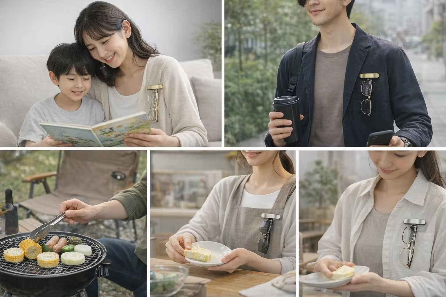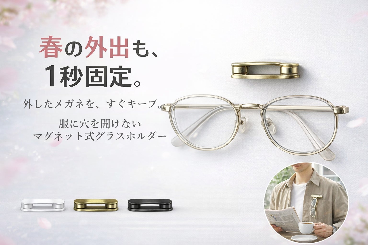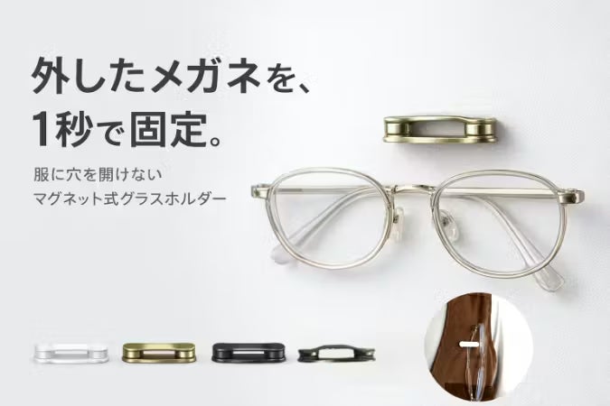 外したメガネを“もう無くさない”服に穴を開けず1秒固定できるマグネット式ホルダー