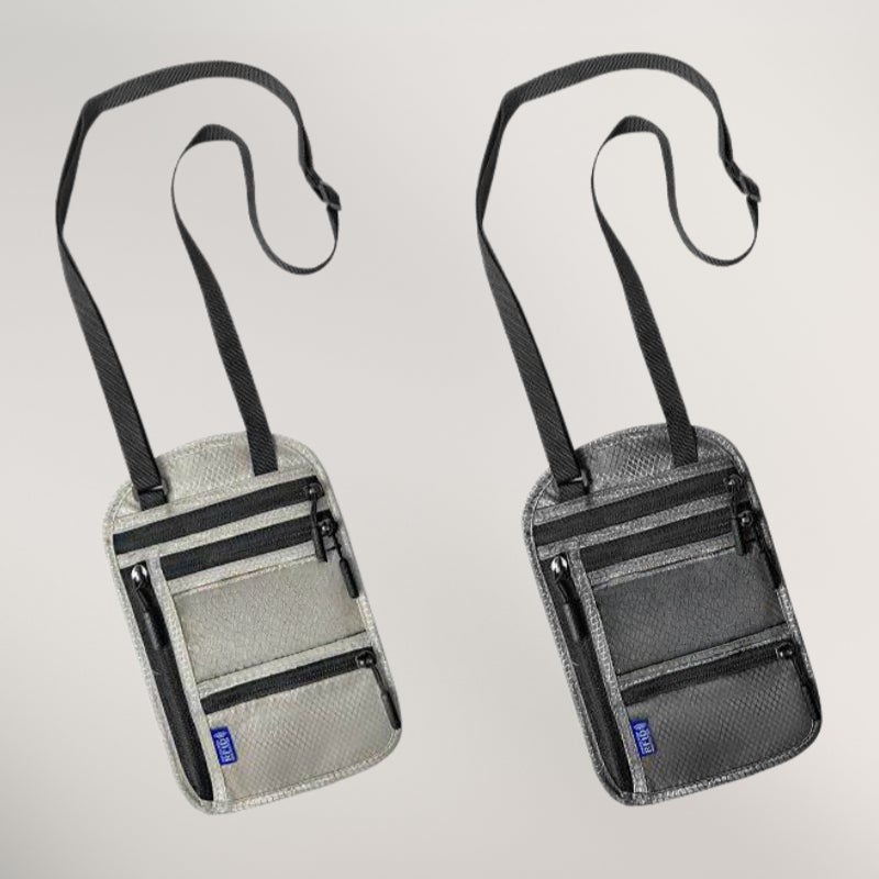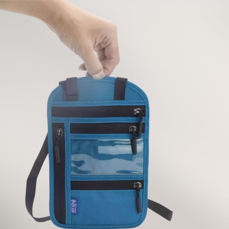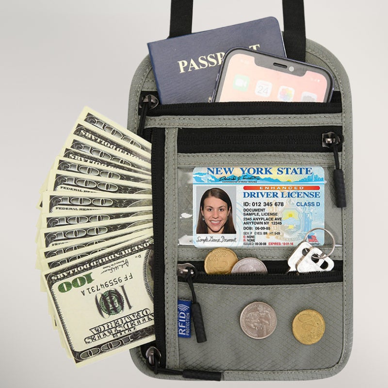 貴重品をまとめて管理できる首掛けポーチです。