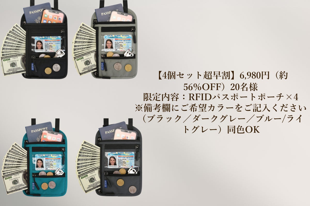 ・【4個セット超早割】6,980円(約56%OFF)20名様限定内容:RFIDパスポートポーチ×4