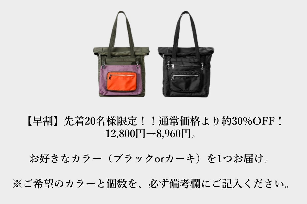 お好きなカラー(ブラックorカーキ)を1つお届け。
