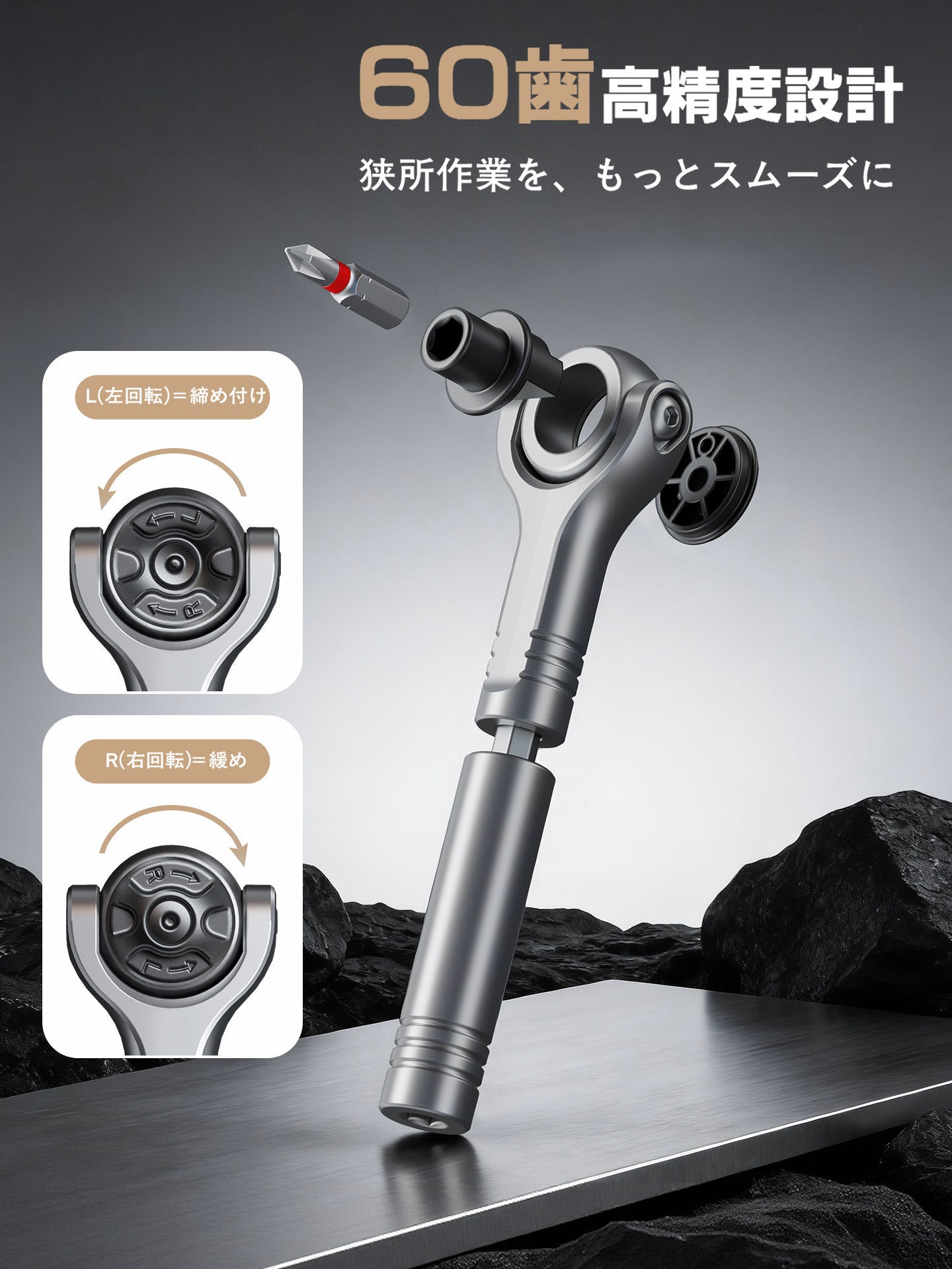 もう回せない場所はない。角度の制約をゼロへ。全方向・変形ラチェットセットG2
