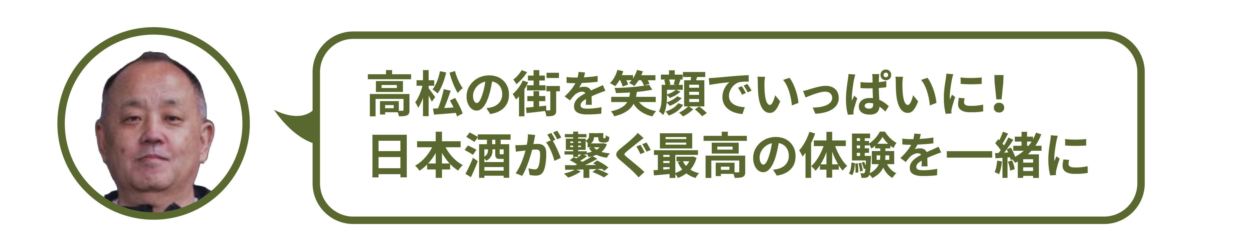 20年以上香川県で飲食店として日本酒に携わらせていただいて参りましたその中で東京や大阪を始めいろんなところで酒蔵さんと飲食店さんが一緒になってその素晴らしい文化を発信するイベントを見たり参加させてもらったりしてきました。そんな素敵なイベントがこの高松で行われるという事でワクワクしかありません!さらにそれに携わらせていただける貴重な機会ですので自分も楽しみながらしっかり発信してさらに発展させていけるように努めてさせてもらいたいと思ってます。みんなで大いに盛り上げていきましょう!