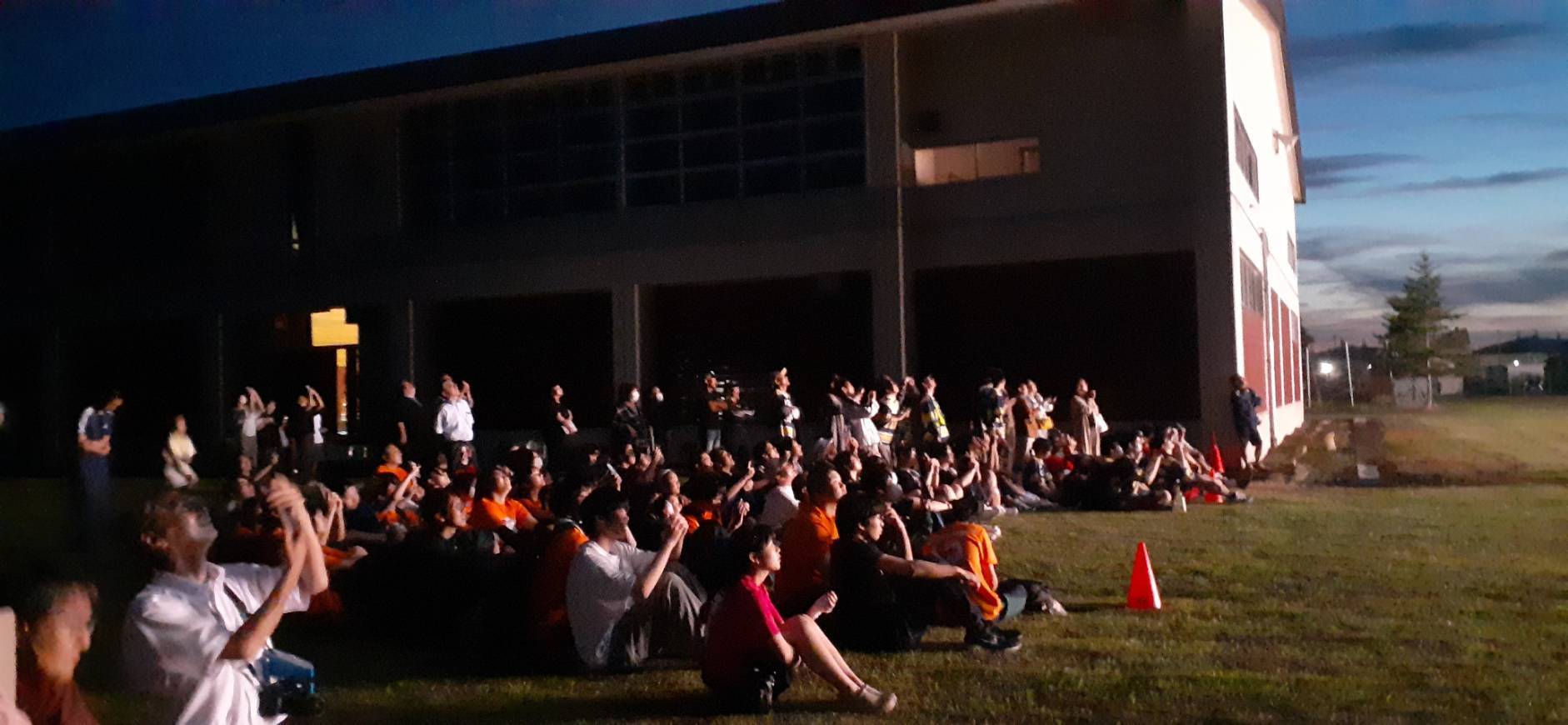 子どもも、大人も、卒業生も、地域の方も、みんなが同じ空を見上げていました。