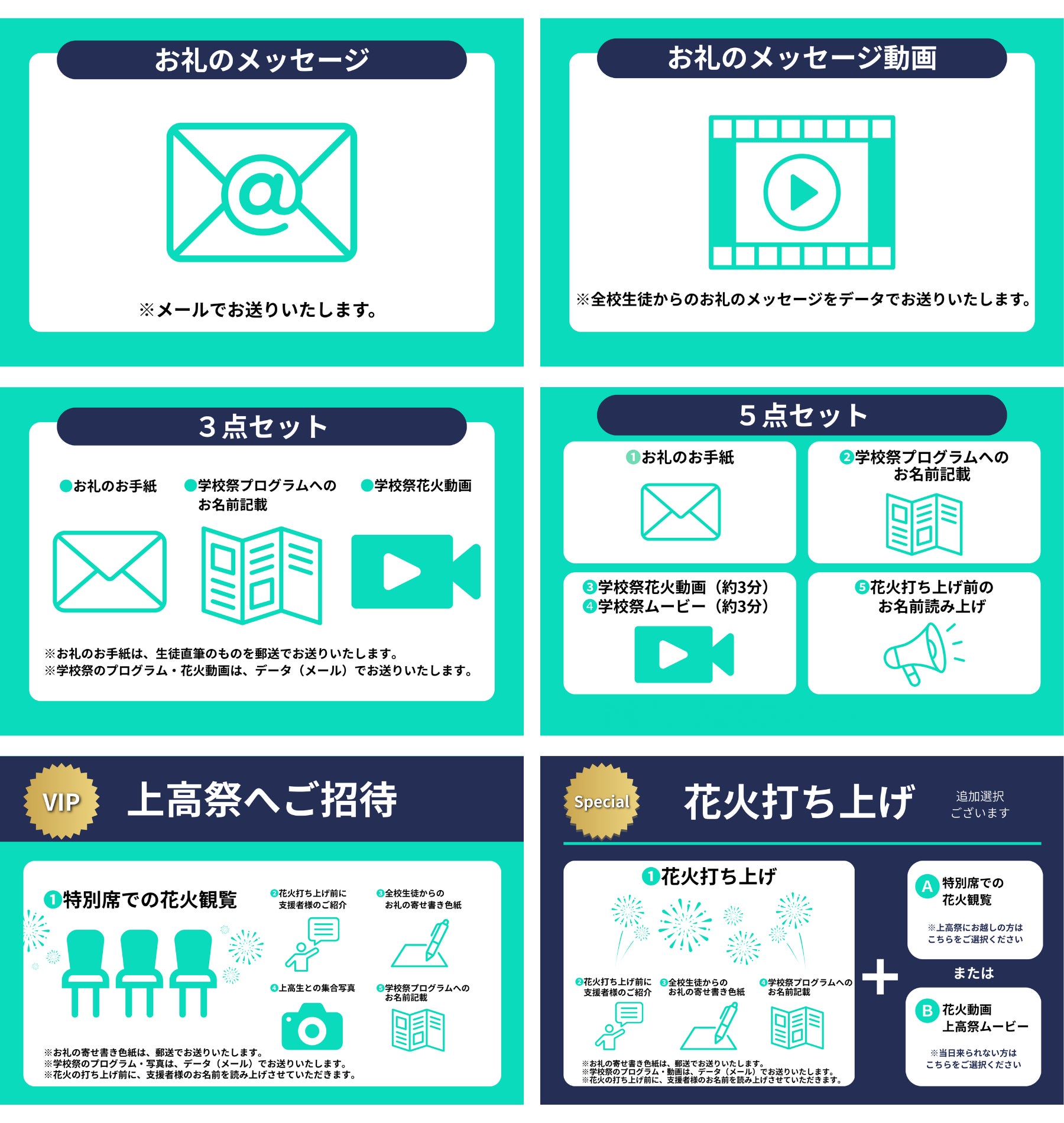 ※多額のご支援をいただき、残額が発生した場合は、後輩たちが企画する学校祭のために活用いたします