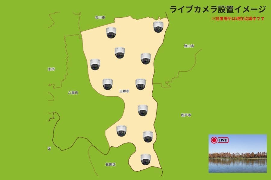 三郷市の魅力を最大限に引き出すライブカメラの設置場所を選定中です。