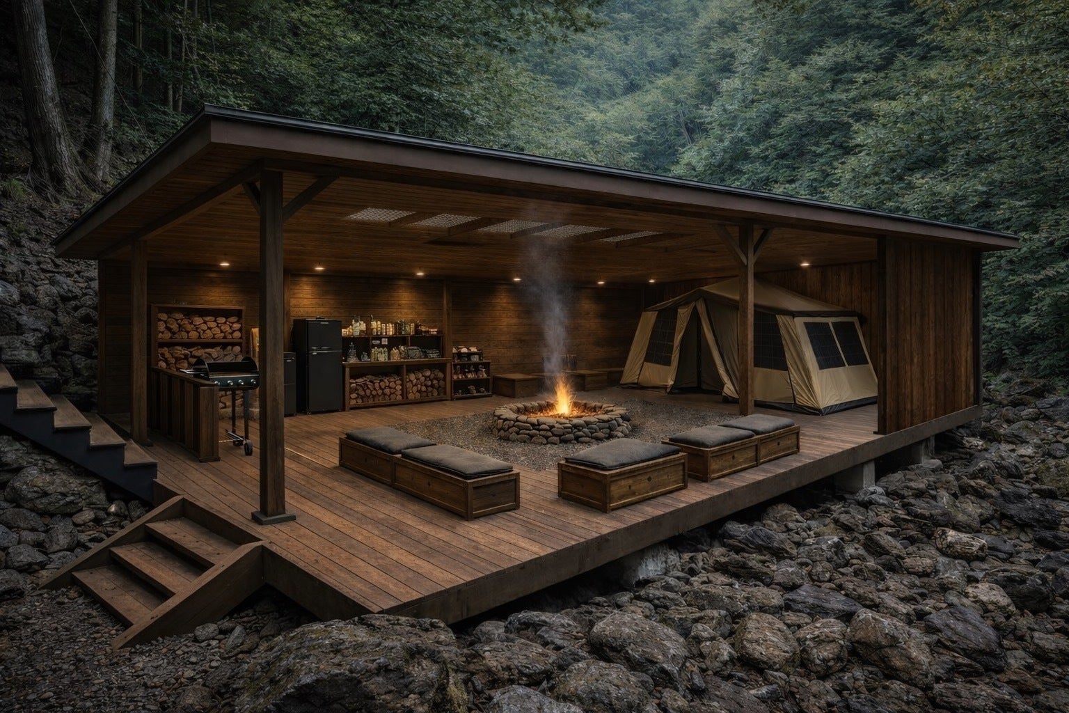 焚き火やグリルが常設でき、整った身体で食を味わえる。