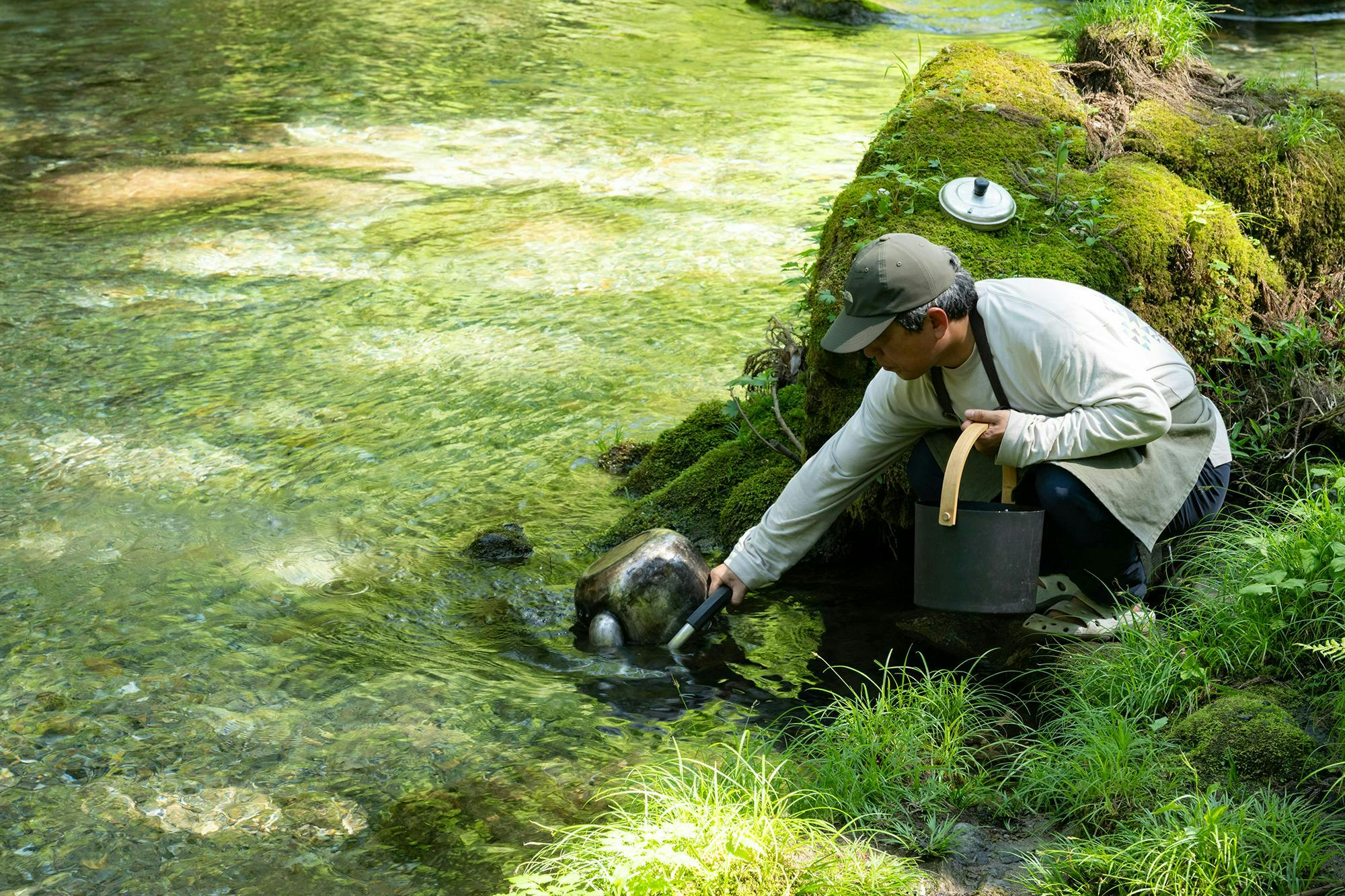 天然伏流水の川水風呂。