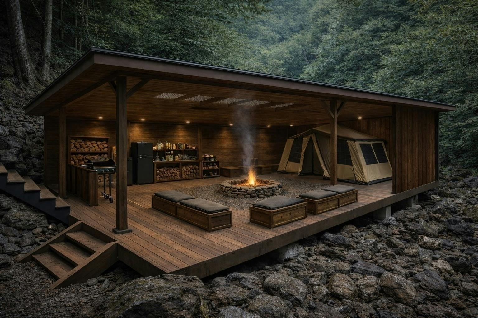焚き火やグリルが常設でき、整った身体で食を味わえる。