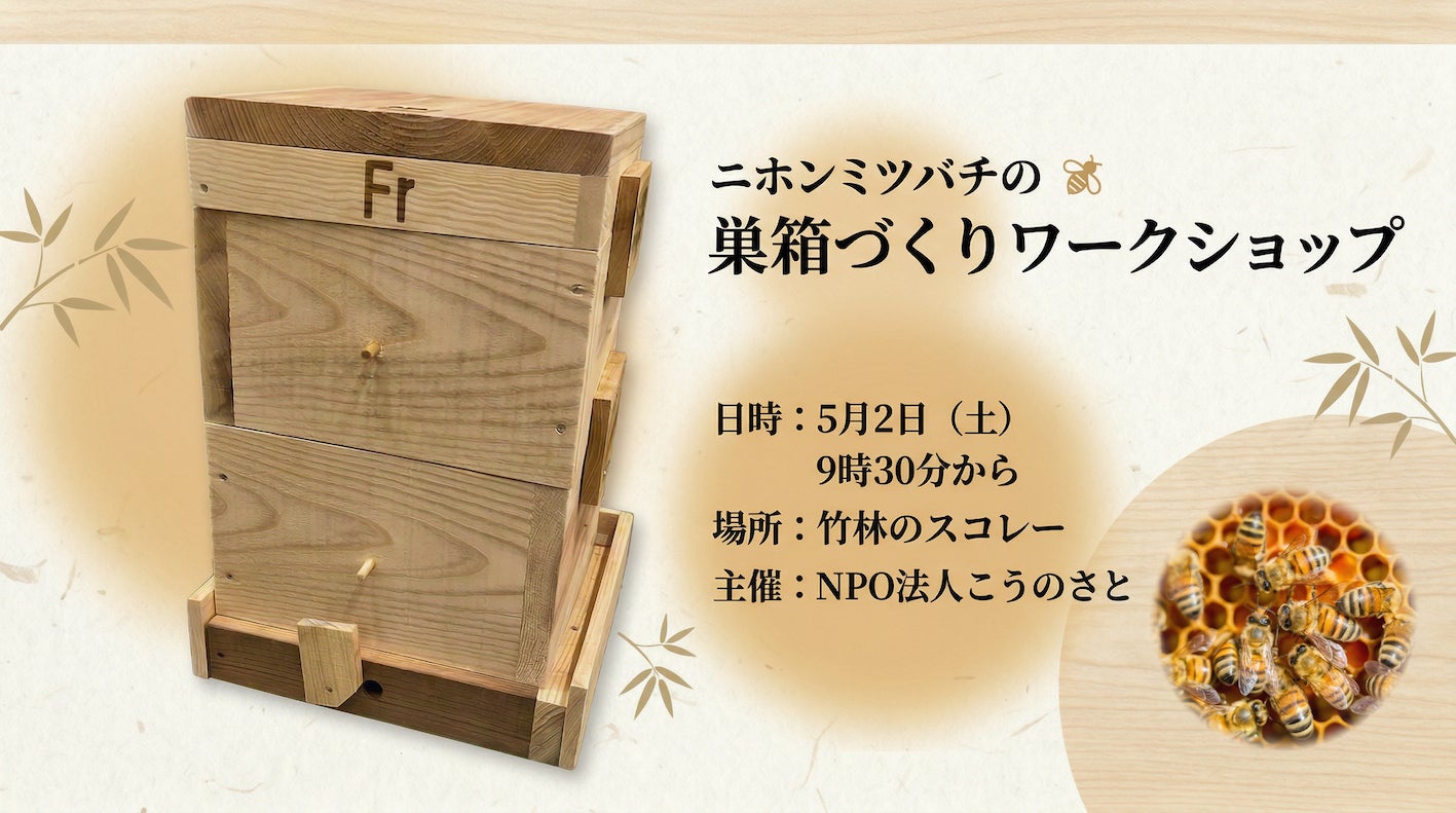 5月2日(土)にニホンミツバチの巣箱づくりワークショップを開催します。詳細は下のリンクからご確認ください。
