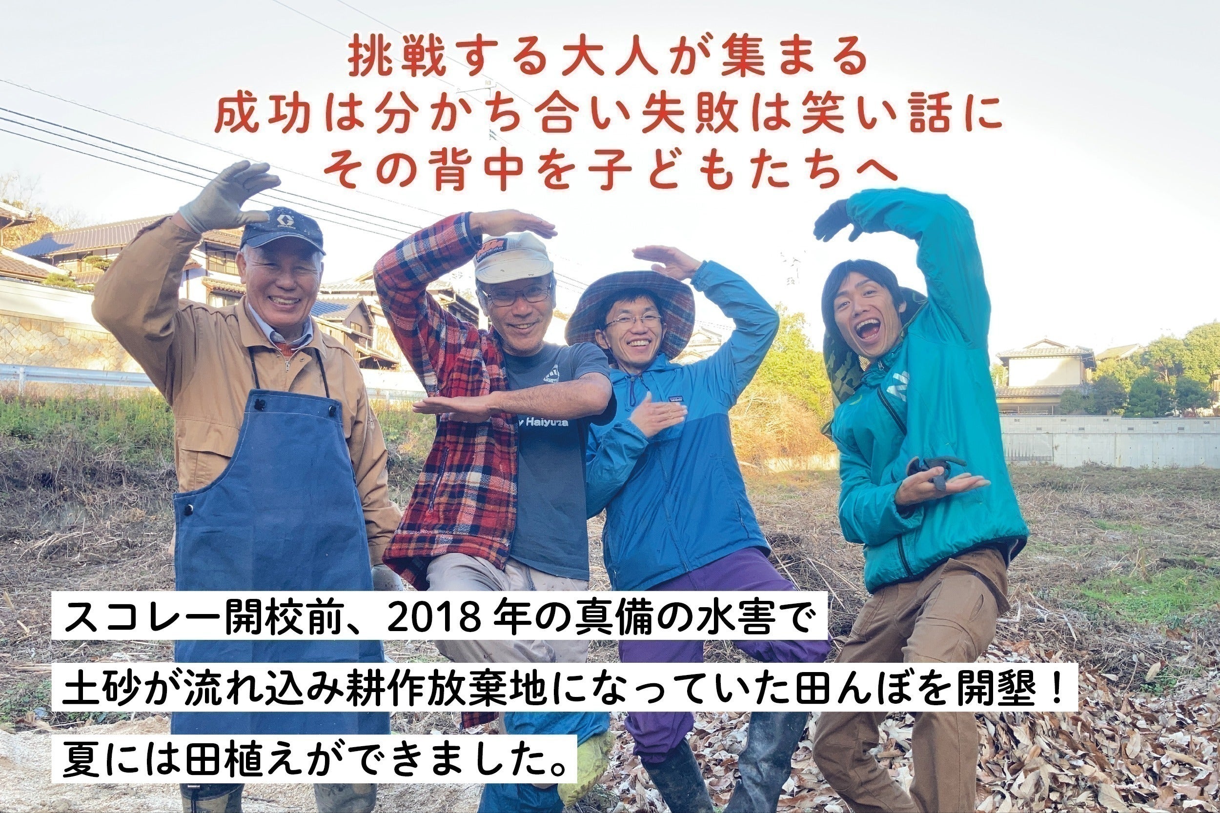 今回のプロジェクトでは、私たちが運営するオルタナティブスクール「竹林のスコレー」を中心に、里山の「命がめぐる循環型農業」を多様な大人が集い、学び、実践できる場所“スコビレッジ”をつくります。