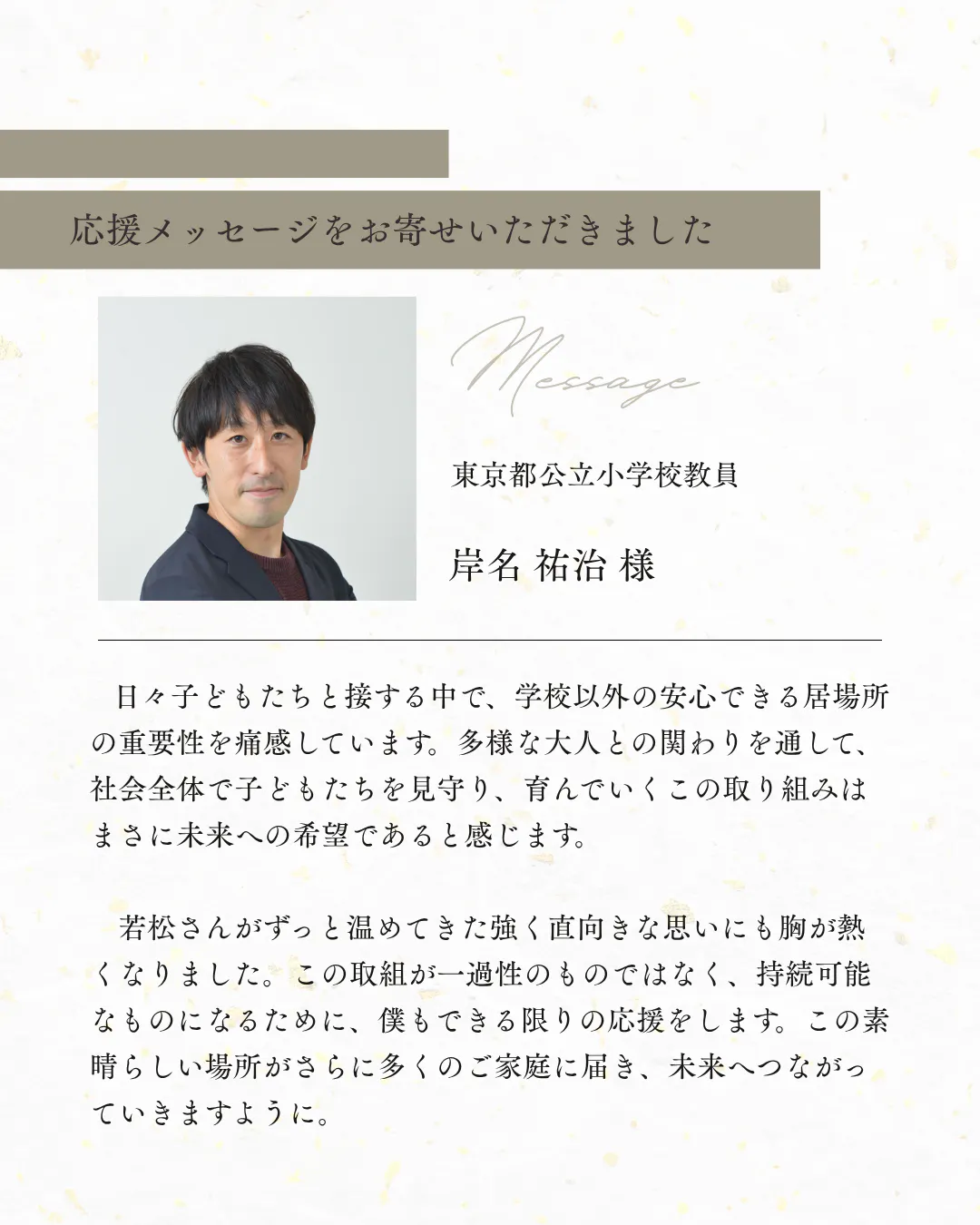 クラファンの取り組みに応援メッセージを寄せてくださったみなさま