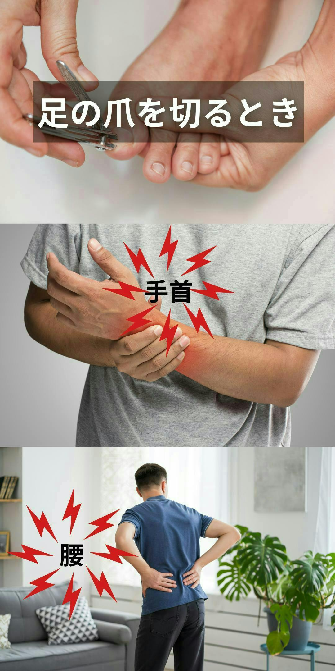 普通の爪切りで足の爪を切るとき、手首をひねったり、腰を大きく曲げたりしてつらいと感じたことはありませんか?