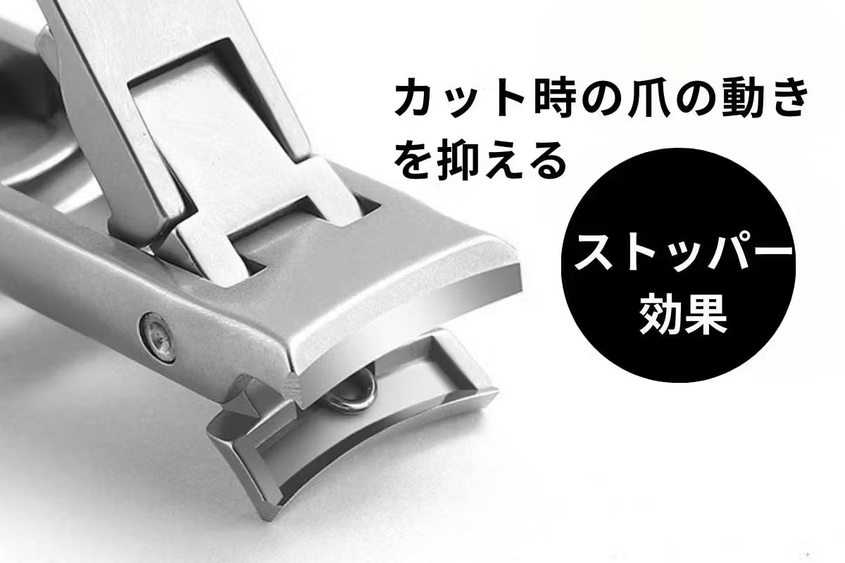 広口設計で、厚い爪もしっかりカットできます。 爪が硬くて切りにくい方や、通常の爪切りでは力が必要だった方でも、スムーズに切ることができます。大きく開くので、無理な力をかけずにしっかり挟み込み、安定したカットが可能です。