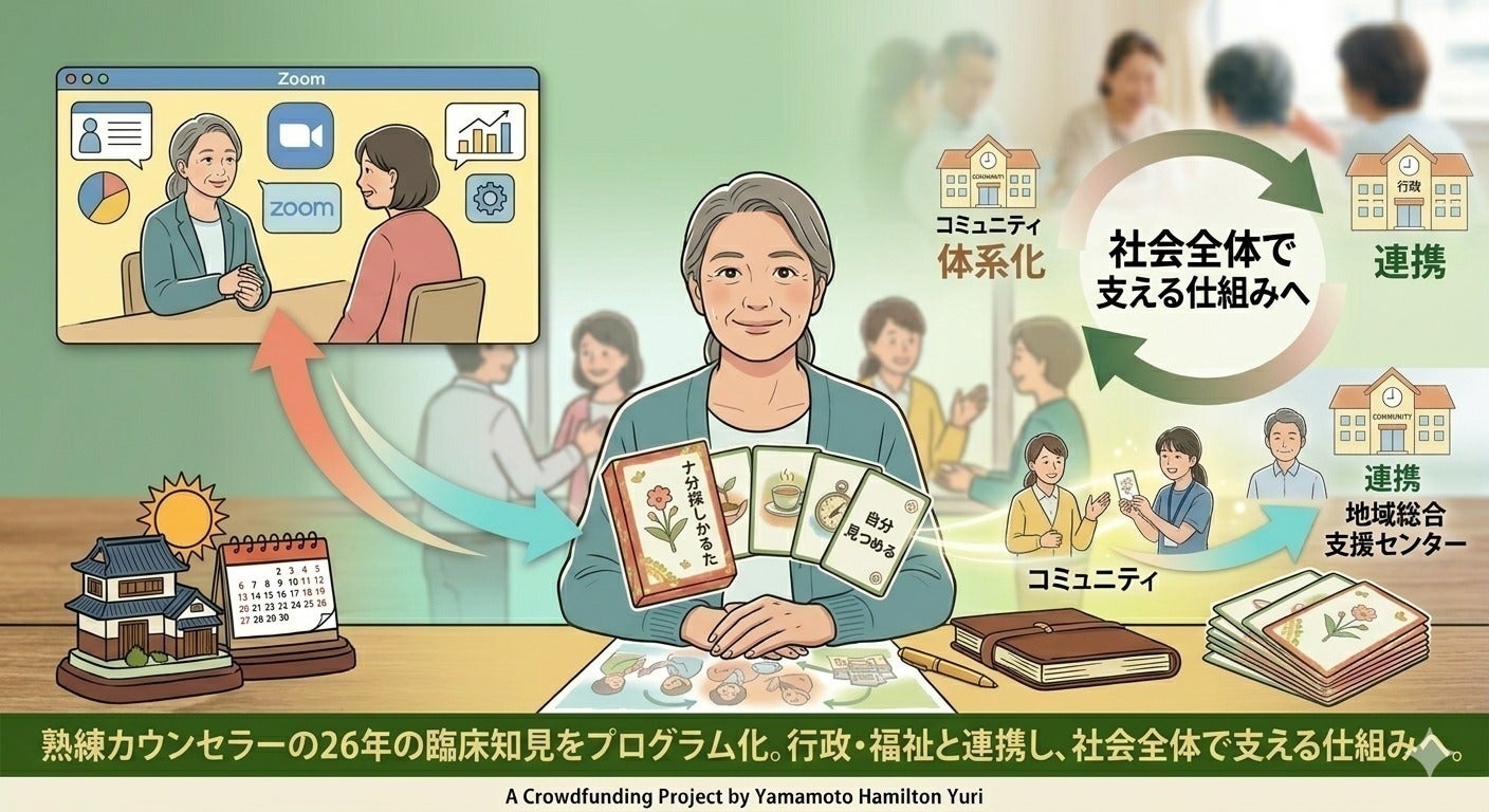 その中で向き合ってきたのは、数字には表れにくい「家庭内ケアラー」たちの過酷な現実です。本プロジェクトは、26年間にわたり延べ数千人の女性たちの葛藤に寄り添い続けてきた熟練カウンセラーたちの知見を、社会実装するための試みです。私たちは、介護や見取り、家族の絆という名の下に、自分自身の人生を削り続けている女性たちへ、再び「自分らしく生きる勇気」を届けるために立ち上がりました。