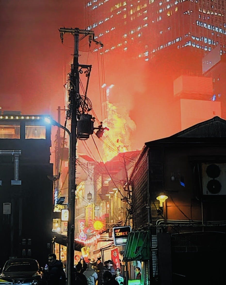 大阪梅田・裏参道で火災が発生しました。