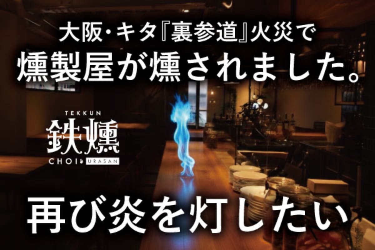 【梅田裏参道】火災を越えて「鉄燻CHOI URASAN」燻製屋の再点火へ
