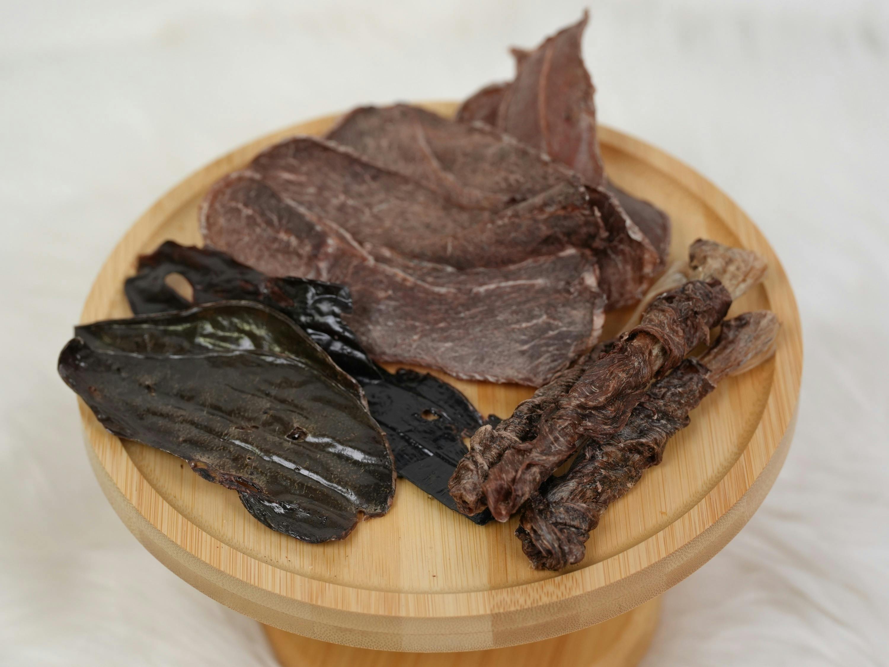 鹿肉ジャーキーとレバージャーキーのお試しサイズをセットでお届けします。どちらも薄く仕上げており手で簡単に割れるので、小型犬からシニア犬まで与えやすい設計です。まずは愛犬の反応を試してみたい方にぴったりのコースです。