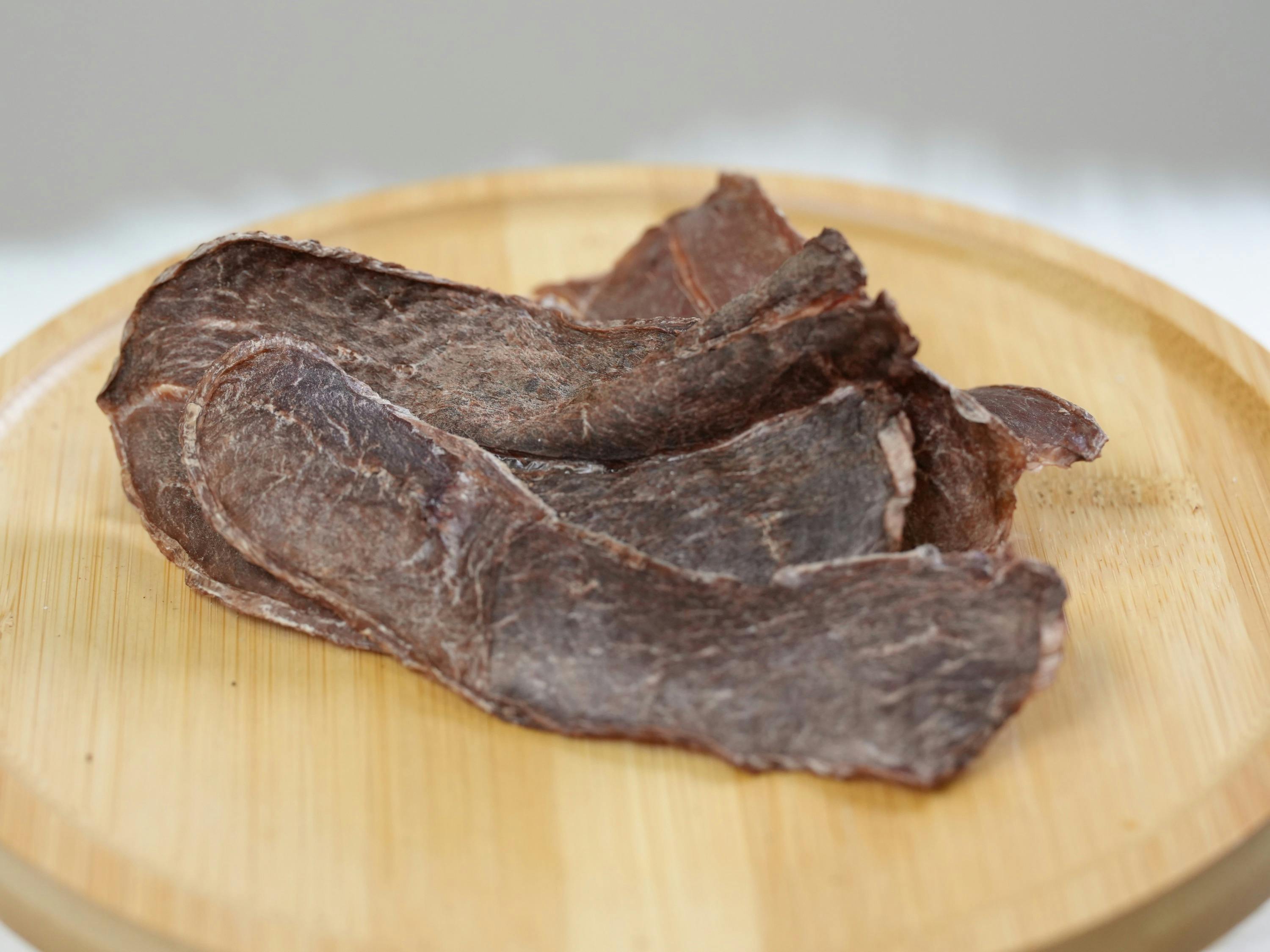 鹿肉ジャーキーとレバージャーキーをフルサイズでお届けします。薄くて割りやすいから、トレーニングのご褒美にも、日々のおやつにも使いやすい一品です。愛犬への最初の贈り物に、ぜひ。