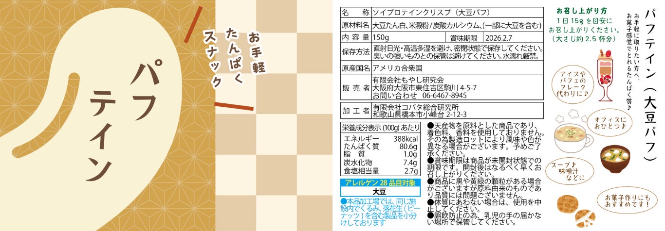 ●パフテイン 名称:ソイプロテインクリスプ 内容量:150g