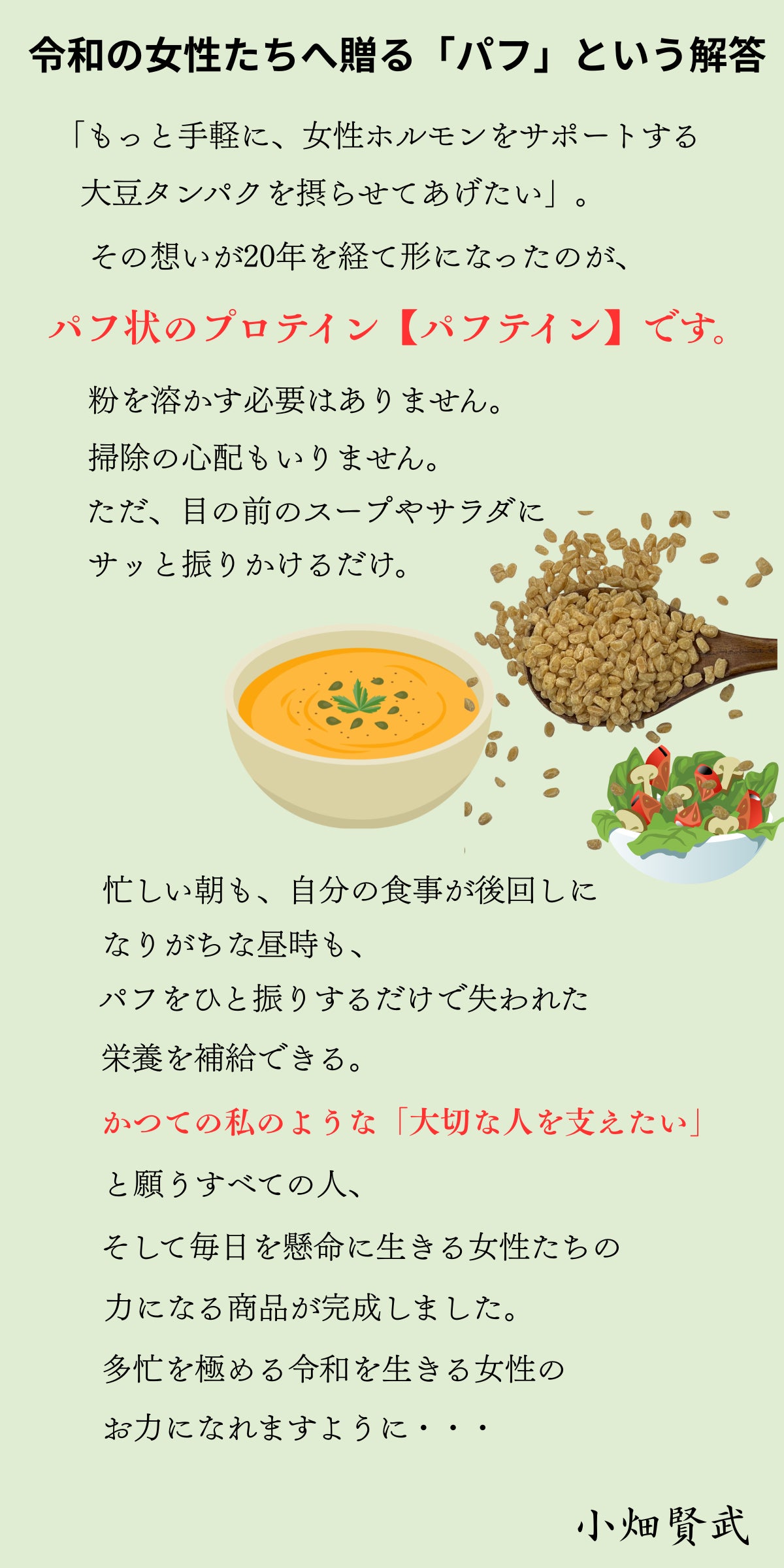 この度は私たちの新商品【パフテイン】についてお話しさせていただく機会をいただき、