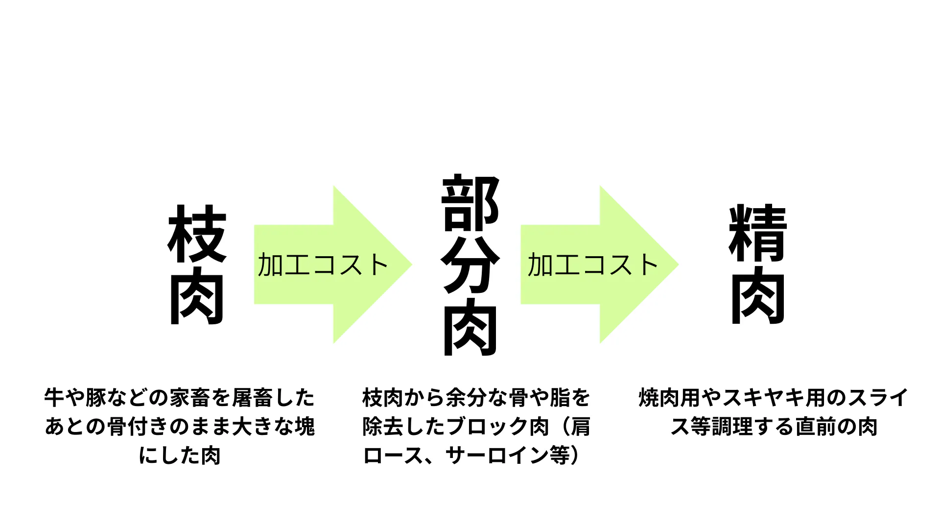 たとえば、枝肉からの加工に必要な大型冷蔵設備や、豊富な商品を並べるためのショーケース、衛生的な調理環境を整えるための加工機器など、初期投資が大きくなります。