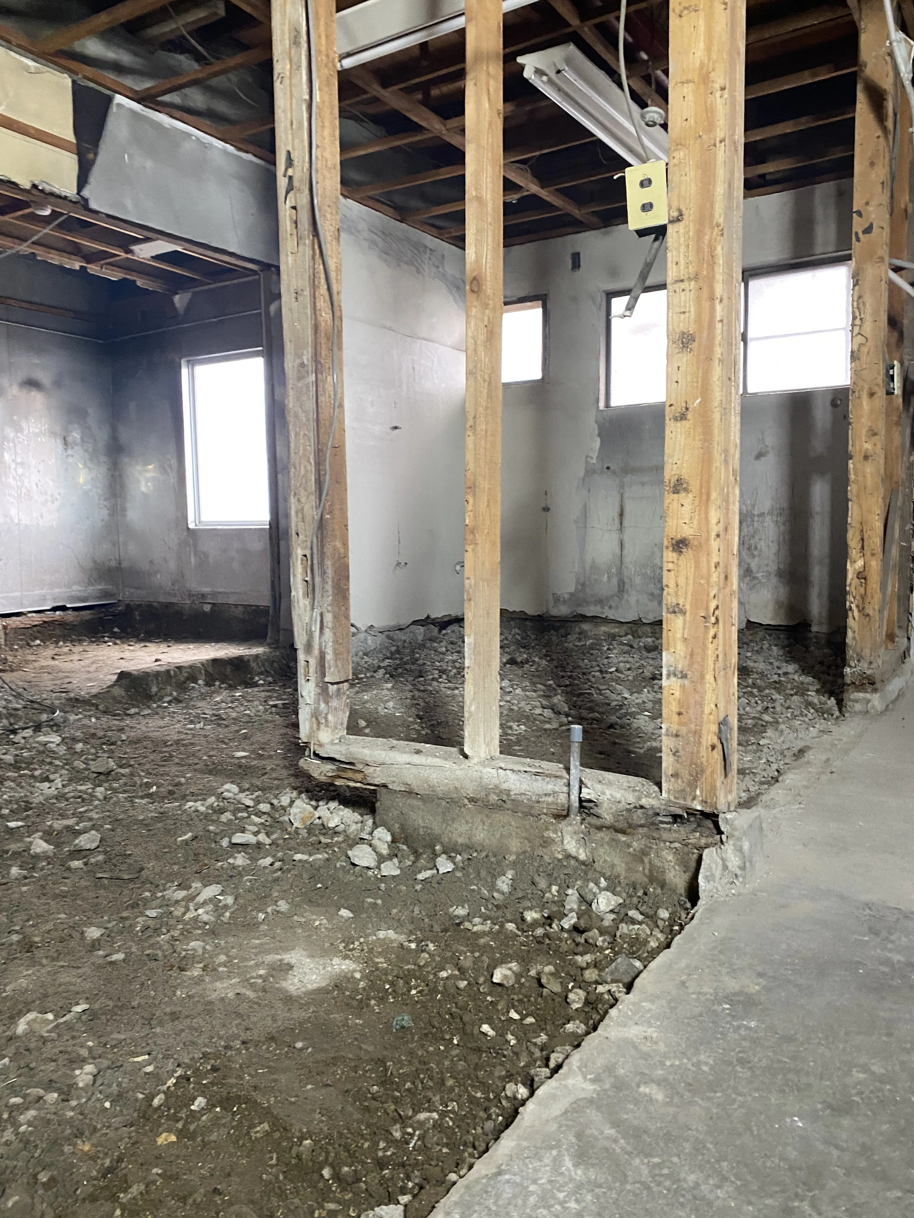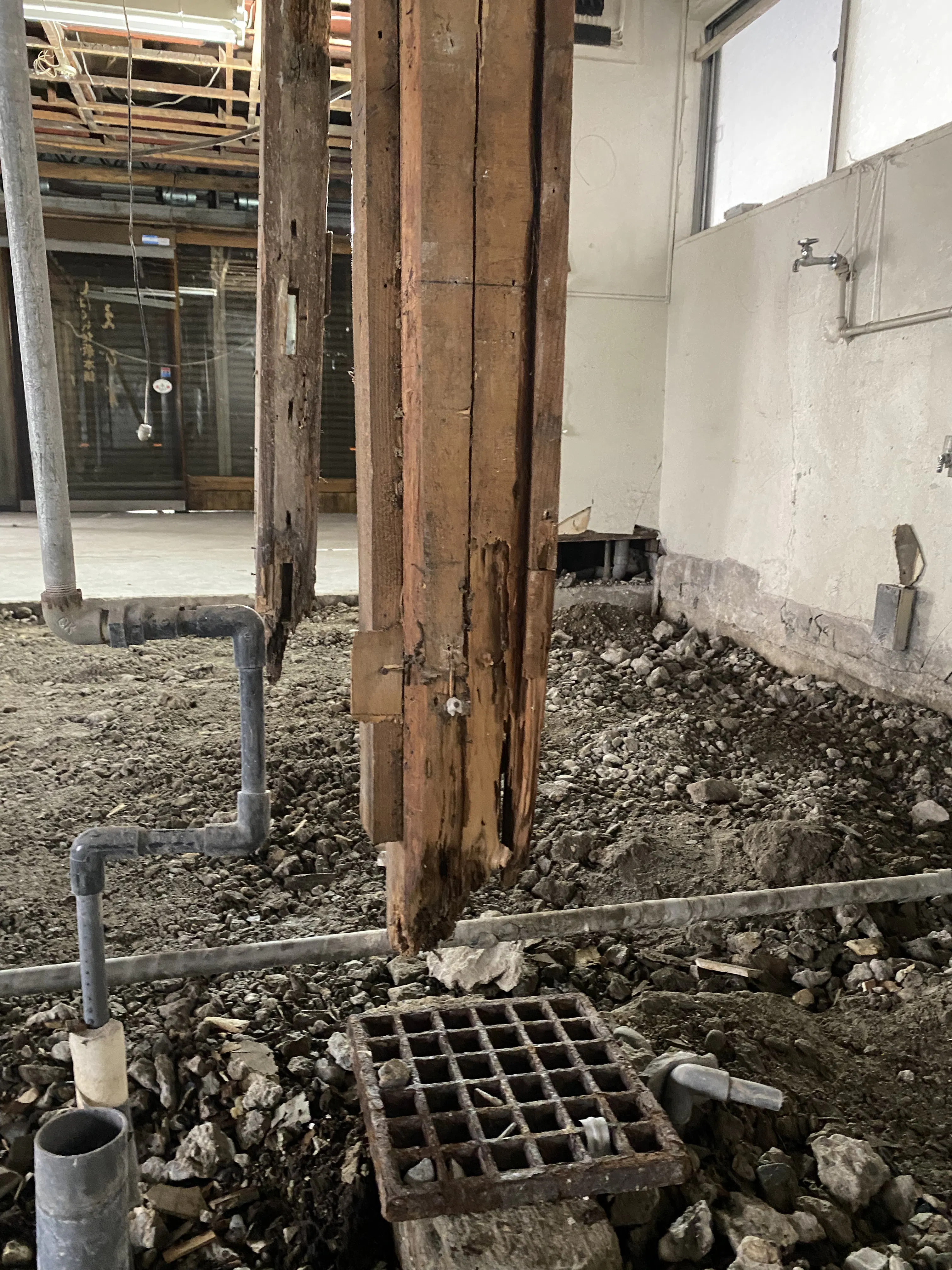 現在、店舗の内装工事に着手しました。前の店舗をそのまま活用できるわけではないので、解体からのスタートです。解体したところ、基礎部分である柱等を造り直す必要があることがわかりました。