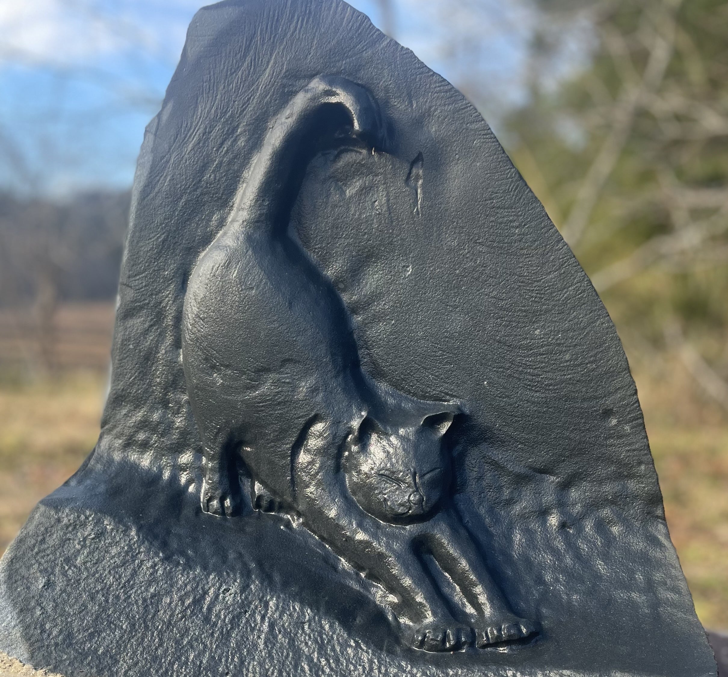 猫神神社が位置する大内地区も、磨くと黒光りする大内石があり、猫神神社の猫碑は大内石で作っております。