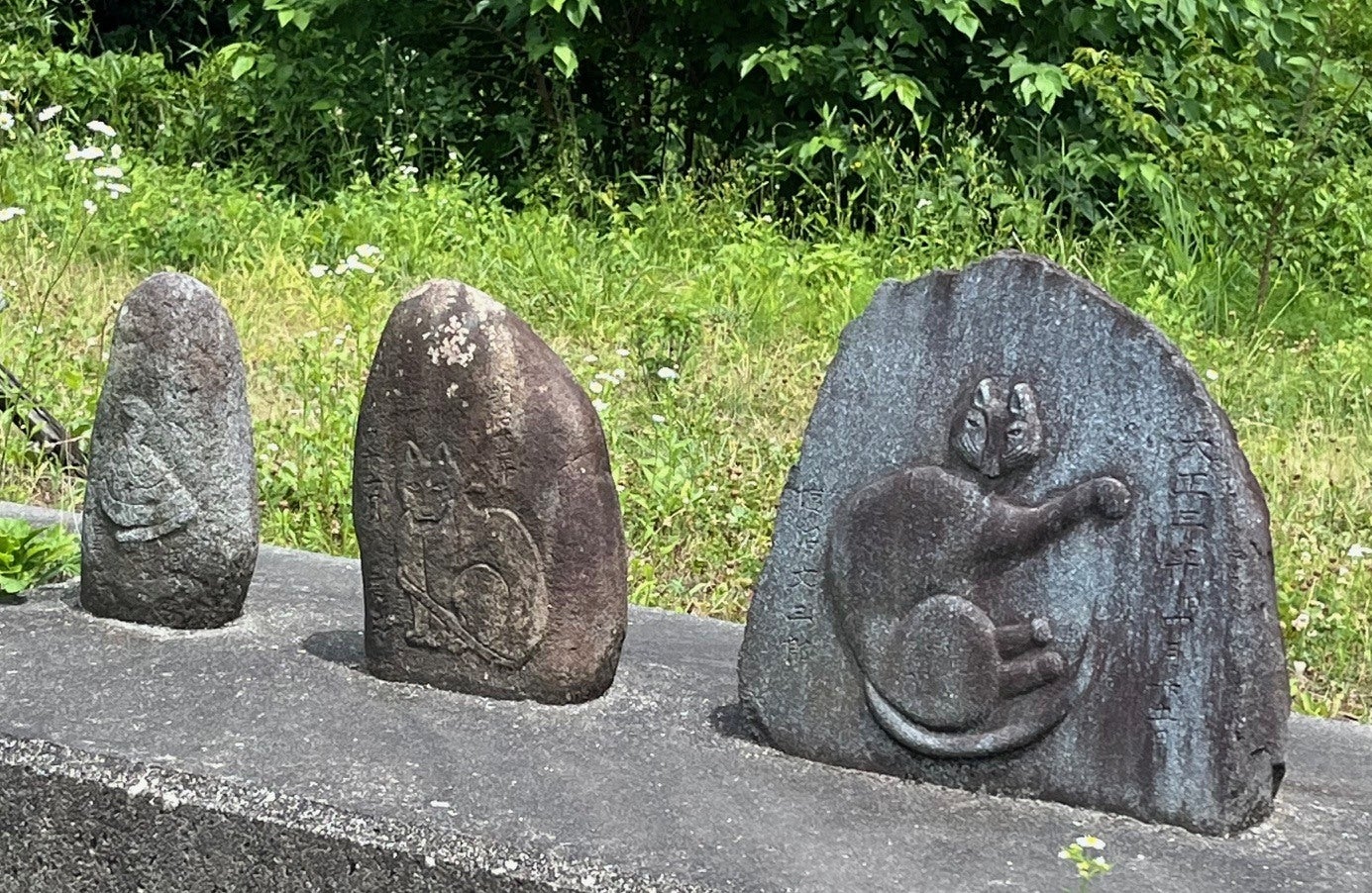 そして、丸森町ではその猫を祀るために、石に猫を掘って猫碑として奉るようになりました。なんとその数は日本に存在する猫碑の半分以上が丸森町に存在するといわれております。