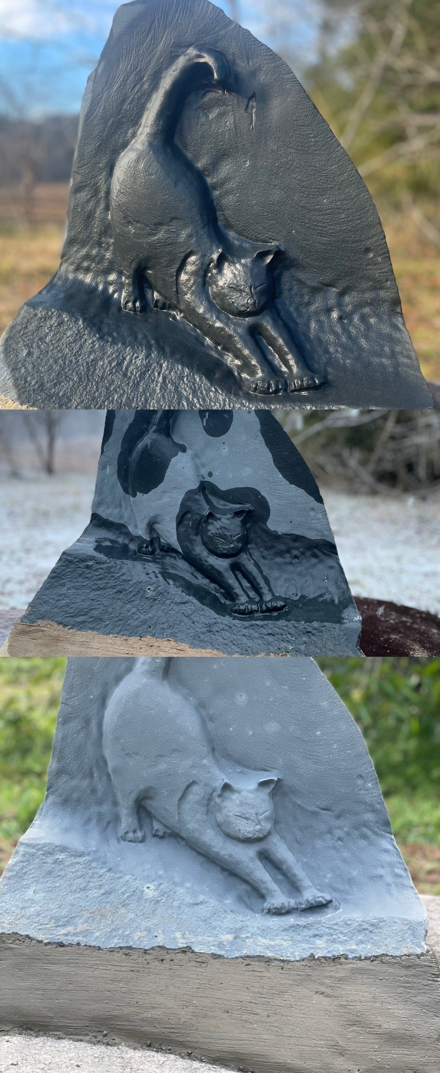 この猫碑は天気によって見え方が変わる非常に貴重な丸森大内石を使用し作成しています。