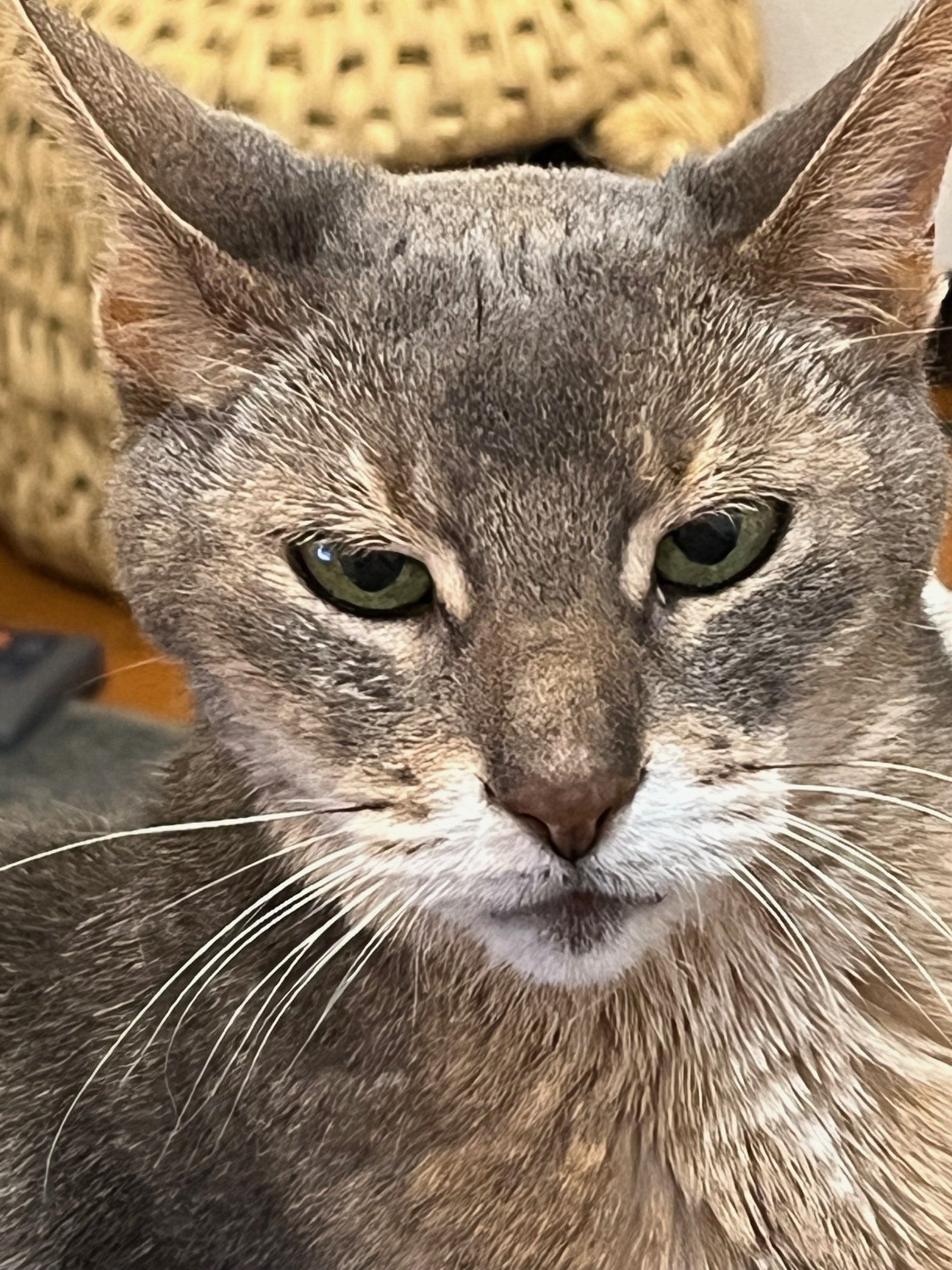 猫神神社3兄弟猫の長男『マロン』ちょっと不満気味の顔です。