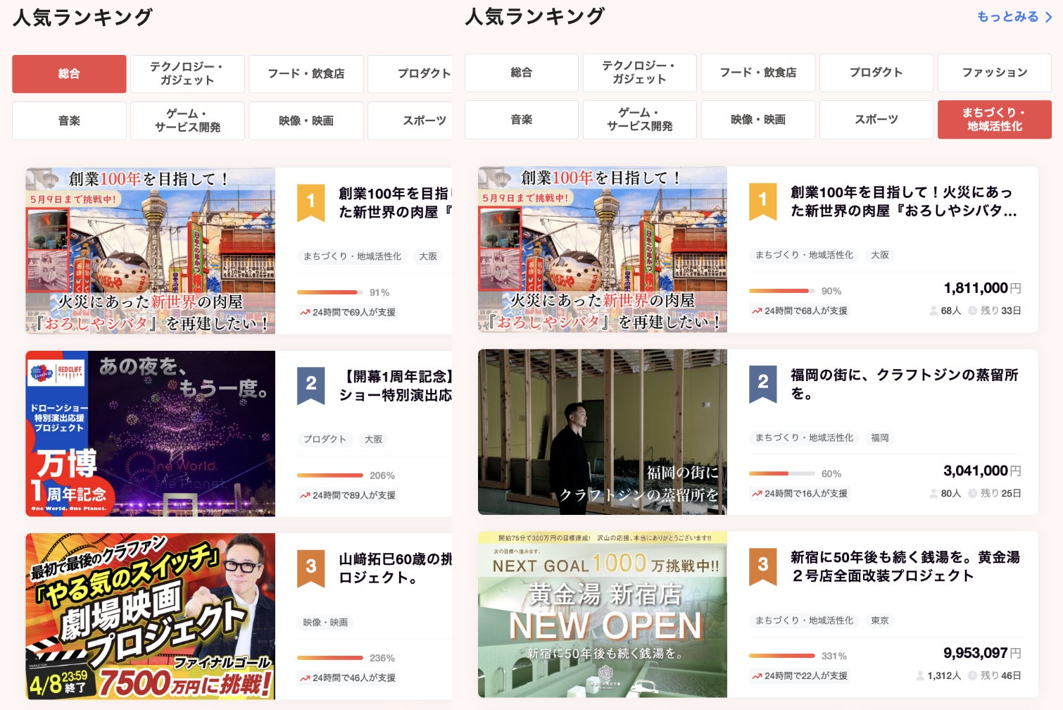 また、CAMPFIRE人気ランキングにおいて、総合ランキング、まちづくり・地域活性化ランキンにおいて1位も取得させて頂きました。