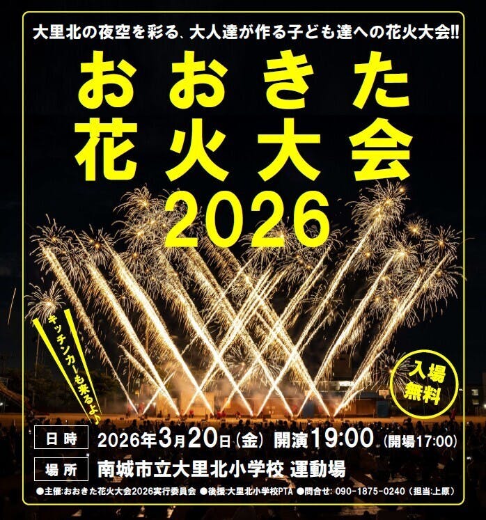 • 運営:おおきた花火大会実行委員会(地域有志・保護者ボランティア)
