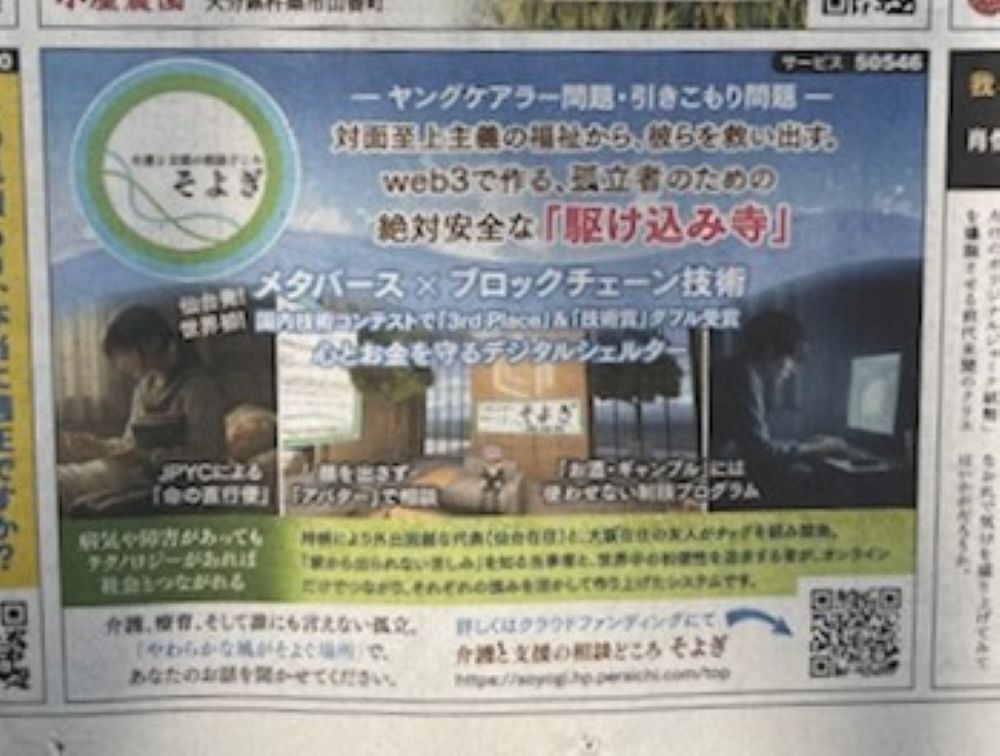 私たちが今回メディア掲載にこだわったのには、明確な理由があります。それは、虐待や孤立で極限状態にある当事者が「そよぎ」のサイトに辿り着いたとき、「怪しい詐欺サイトじゃないか?」という警戒心を解き、安心してもらうためです。「新聞という公的な場所に載っている窓口なんだ」という事実が、彼らを守る最大の信用(お守り)になります。