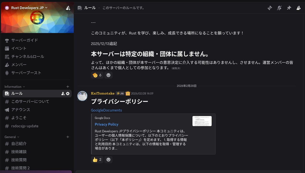 現在はDiscordを中心に活動しており、Rustを学びたい方、実務で活用している方、OSSに貢献したい方が集まっています。