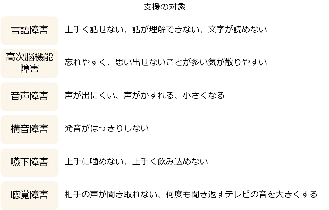 (※言語聴覚士とは、話す・聞く・食べるの専門家で、理学療法士や作業療法士と並ぶ国家資格。多くの医療施設や教育機関等で従事しています。略称はST:Speech-Language-Hearing Therapist)