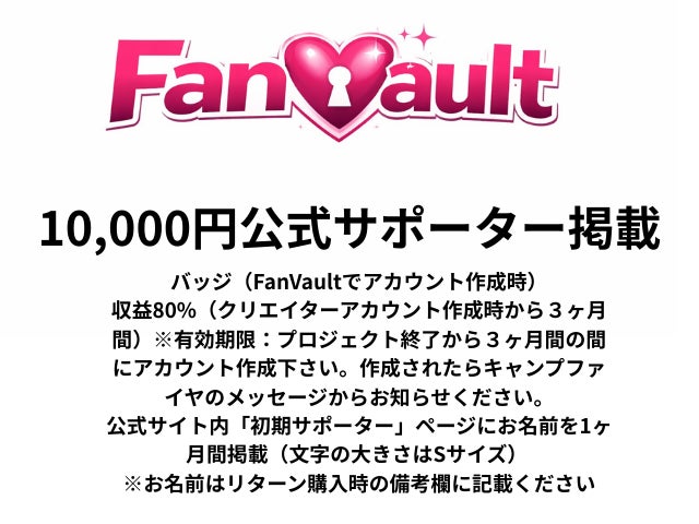 支援いただいた皆様は、FanVaultの「Founder(創設者)」として半永続的に記録されます 。