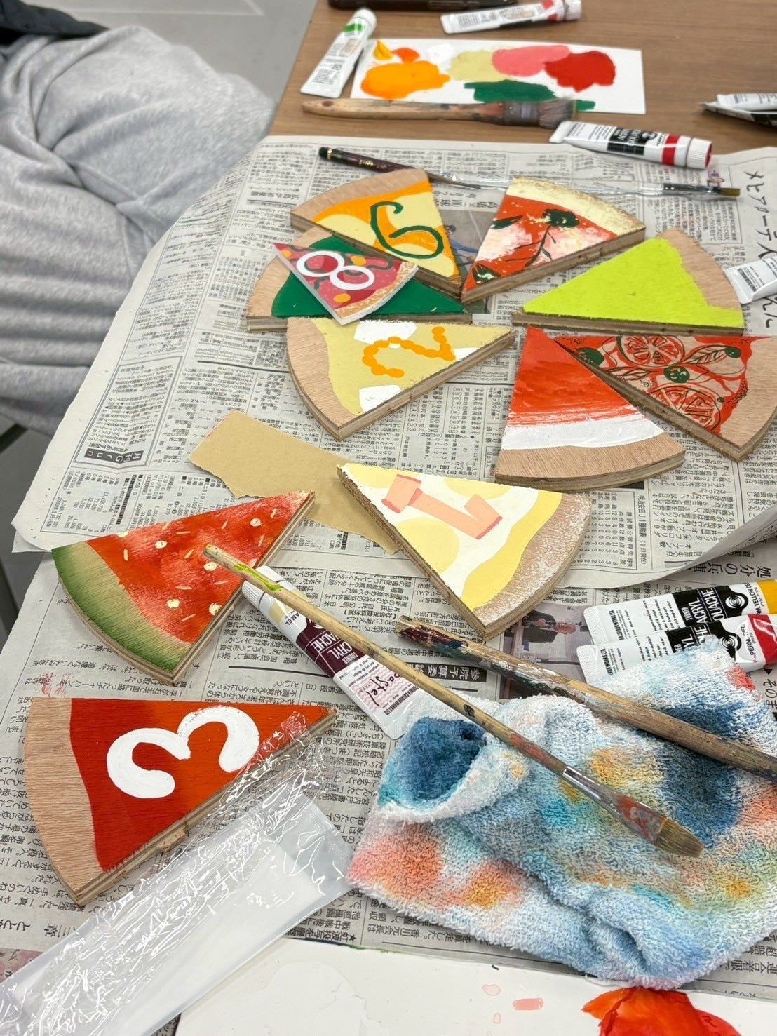 2026/04/16 17:17初期のピザのデザインをみんなで考えていた時の写真です。文字を具材で表現するのに苦戦したり、ずっと見てたらスイカに見えてきたからスイカにしちゃったメンバーもいました! もっと見る