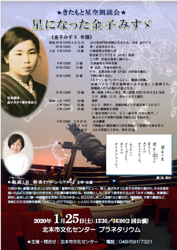 金子みすゞの詩の朗読入門講座を立ち上げるべく、ロビー講演会と、プラネタリウムでの星空朗読会をも開催して下さり…