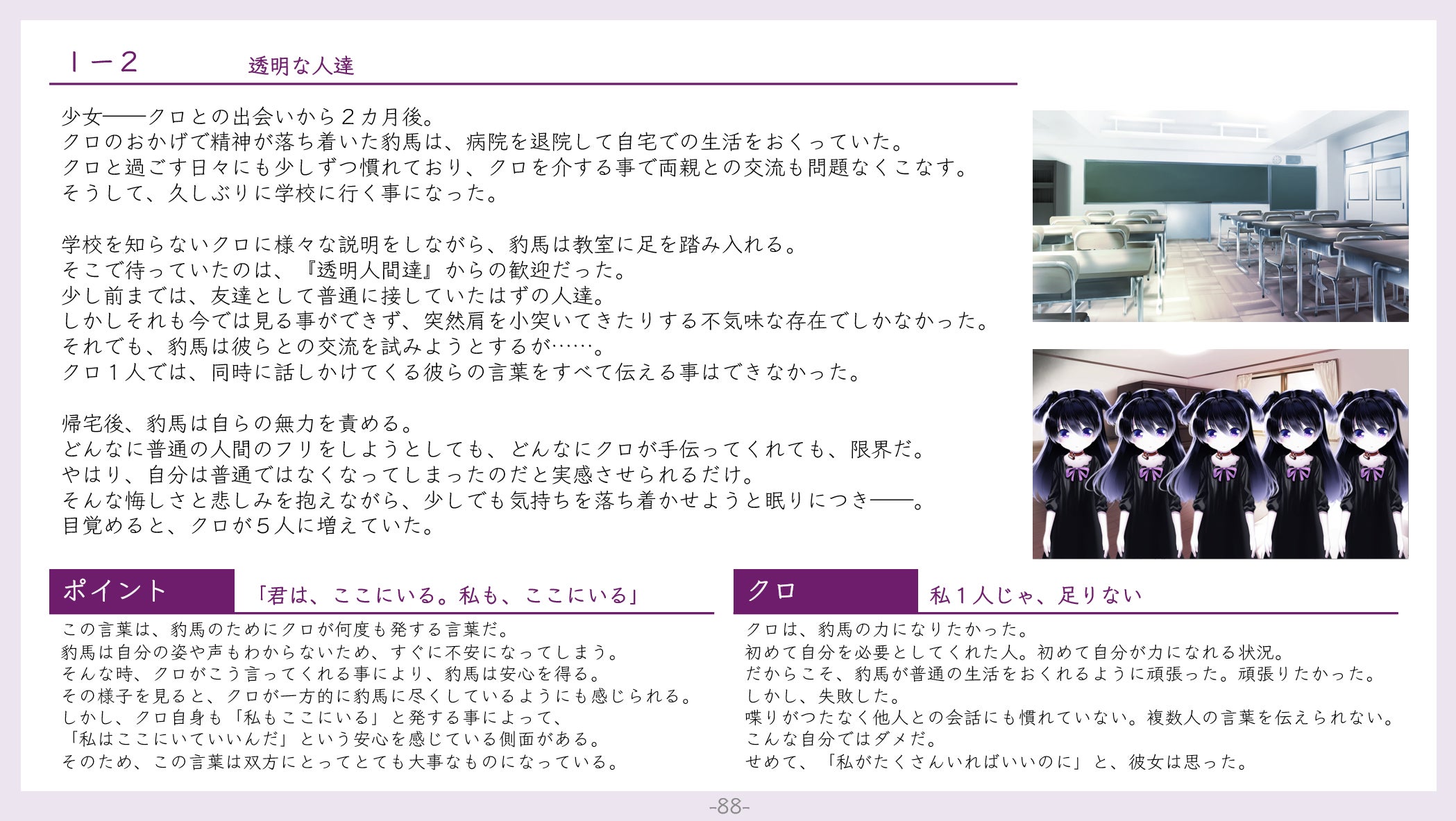 移植版のイベントスチル&立ち絵や過去の落書き、キャラクターやストーリーに関する解説などをまとめたものです。