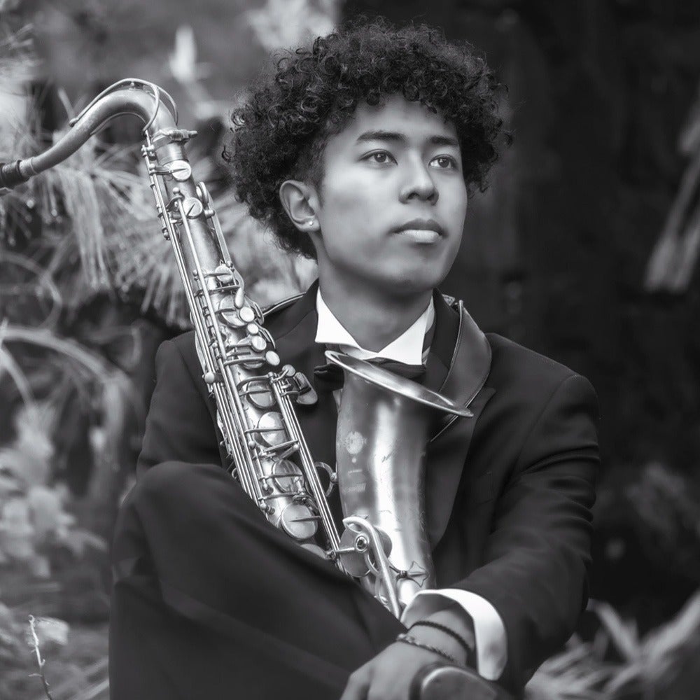 2005年ハワイ州ホノルル生まれ。5歳でタップダンス、6歳でサックスを手にし、名古屋のLittle Hills Jazz Orchestraにて即興表現の礎を築く。中学卒業後に単身渡米。Scott Brown率いる米国の名門Roosevelt High School在学中、全米ジャズ大会の頂点「Essentially Ellington」にて2年連続最優秀賞を受賞。ソロ演奏は、審査員を務めたWynton Marsalisから「卓越した感性」と最高級の評価を受けた。