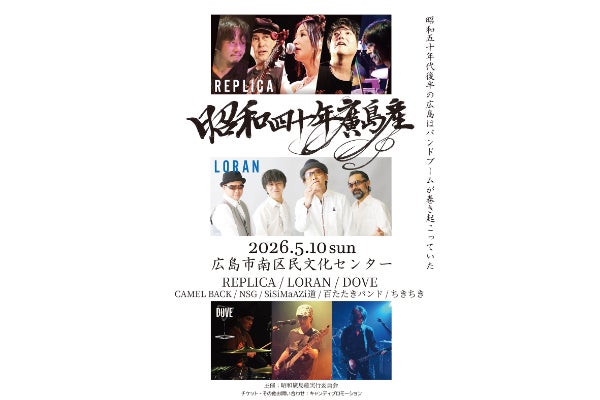 当時、広島で活躍し、その後メジャーデビューしていったバンド=DOVE、REPLICA、LORANの出演が決定。
