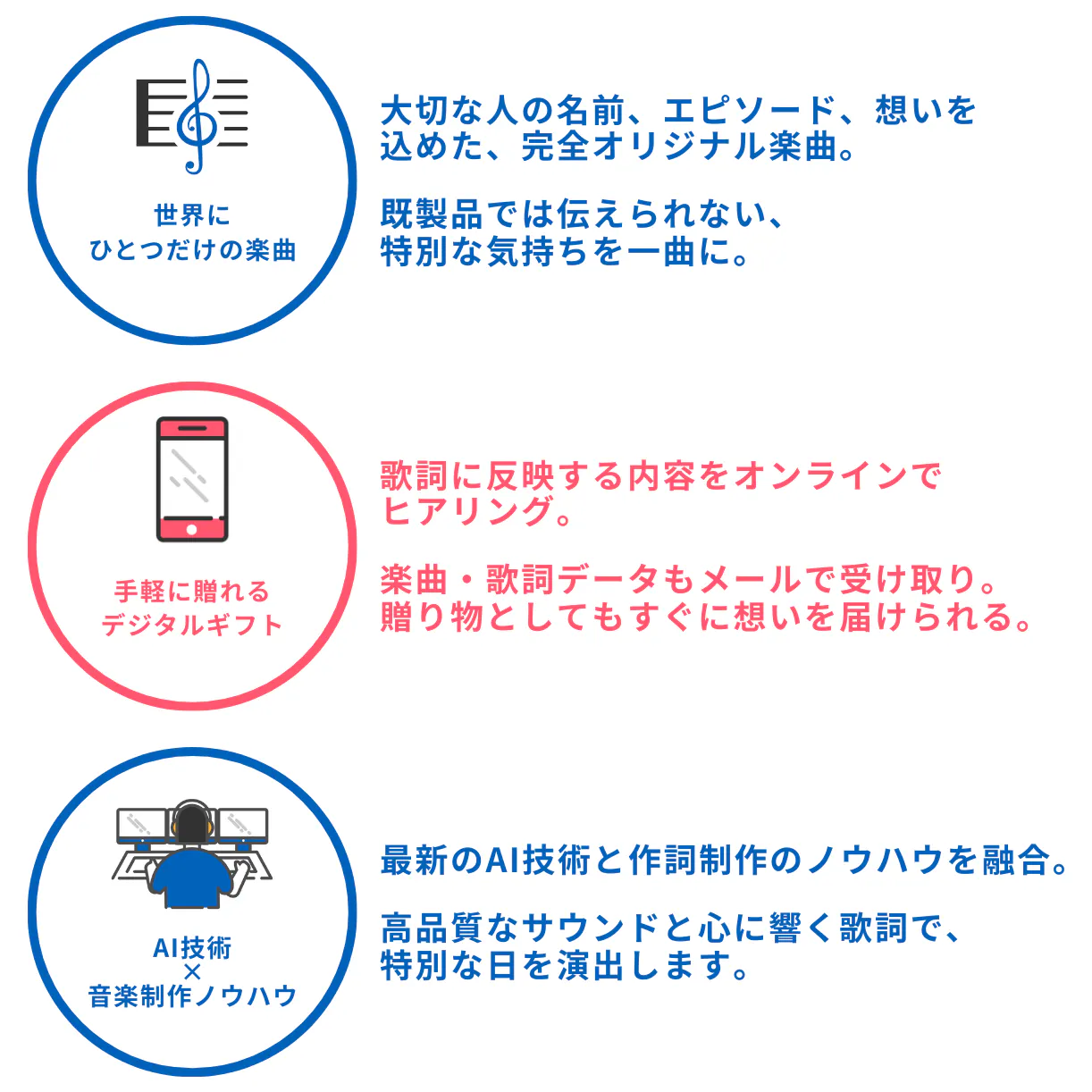 そんな気持ちを、その人のためだけに作られた歌にのせて届けられたら——それはきっと、言葉だけよりずっとまっすぐ心に届く。