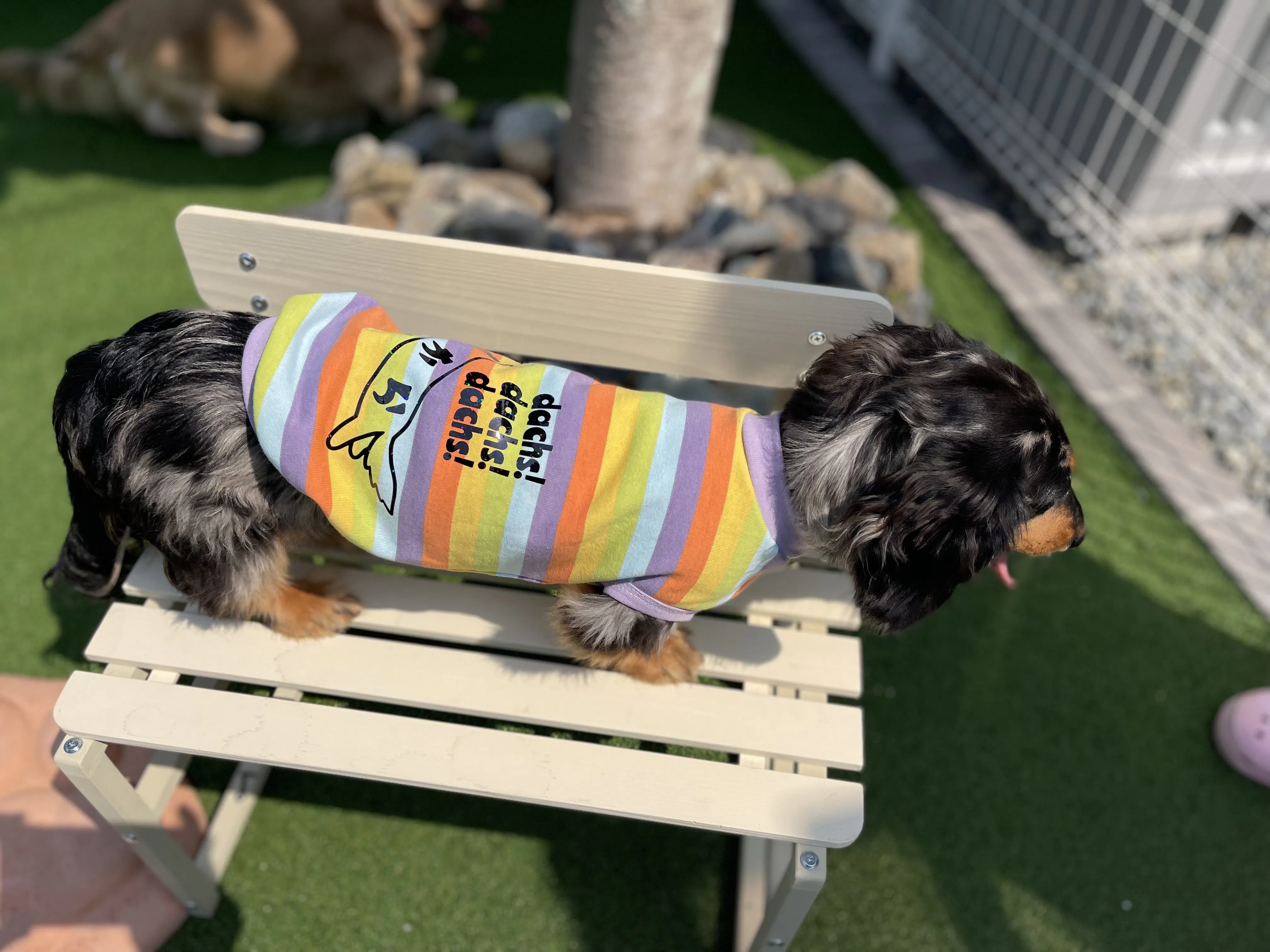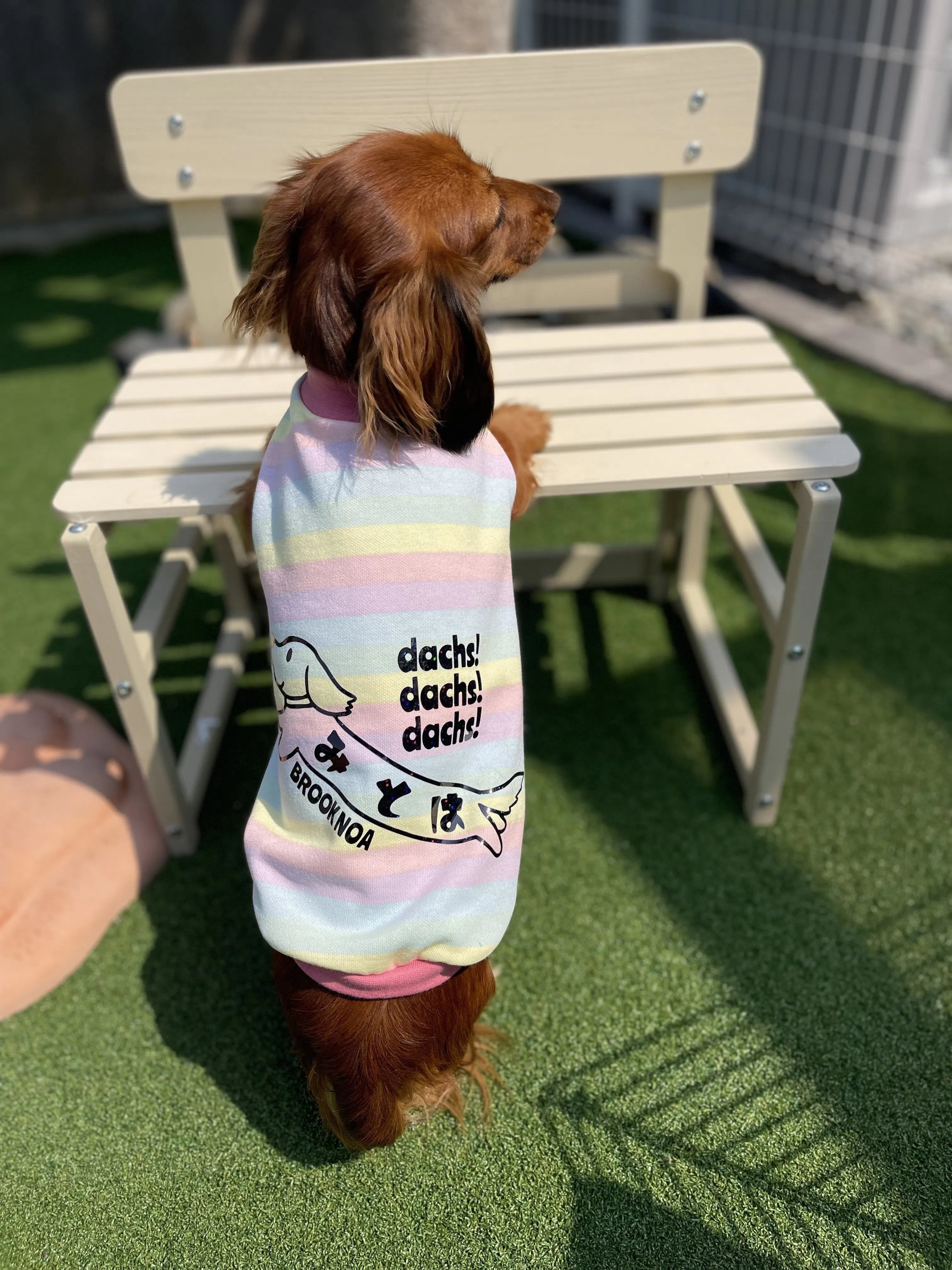 ↑リターンの【ダックス用】愛犬のお名前入り服(レインボータンク)※セミオーダー(フルオーダーではありません)