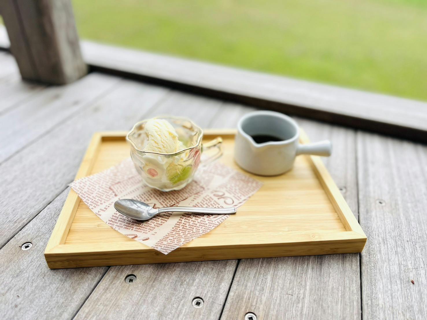 冷たいバニラアイスにあったかコーヒーをかけていただくアフォガード。溶けないうちに楽しむ儚くもじゅうぶん主役級のデザート。