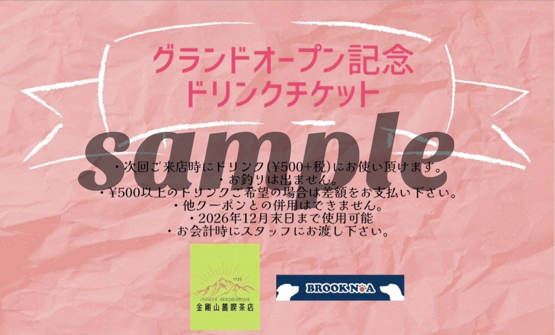 4/18.19の2日間、おひとり様¥1000以上ご飲食いただいたお客様に次回ご利用いただけるドリンクチケットを進呈致します。